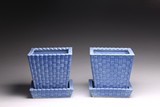 A PAIR OF BLUE GLAZED SQUARE FLOWERPOTS