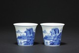 A PAIR OF BLUE AND WHITE WINE CUPS