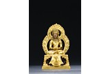 A BRONZE VOTIVE FIGURE OF SHAKYAMUNI AND ATTENDANTS