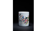 A FAMILLE-ROSE FIGURES BRUSHPOT