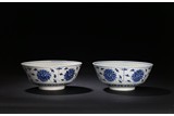 A PAIR OF BLUE AND WHITE 'LOTUS' BOWLS