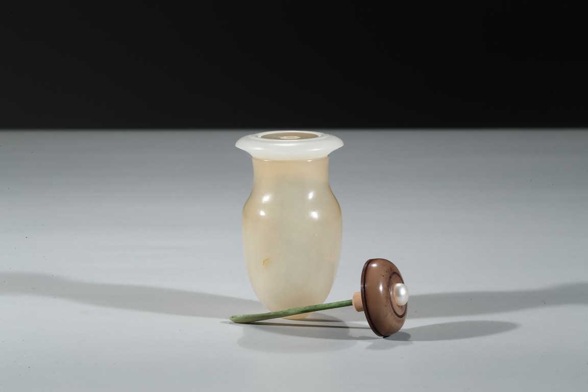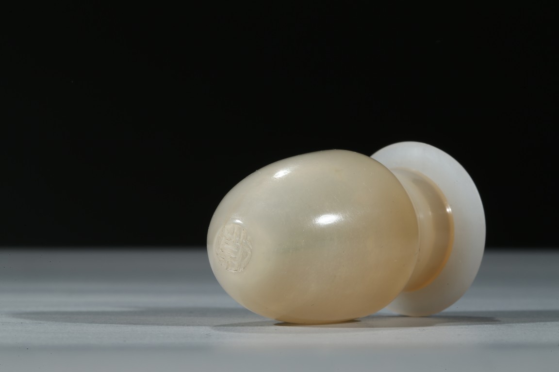Carved in the form of a miniature cricket cage, of ovoid form an rising from flat foot, the base cast with one Qian character. Qing Dynasty period.