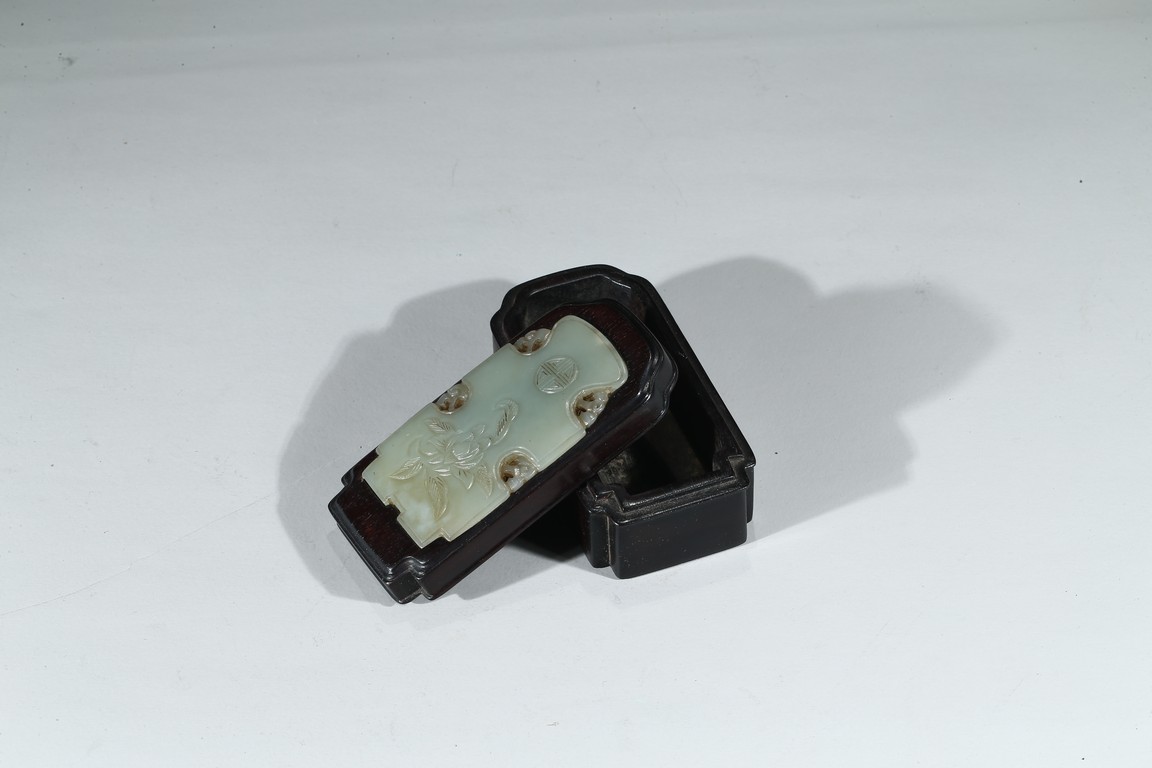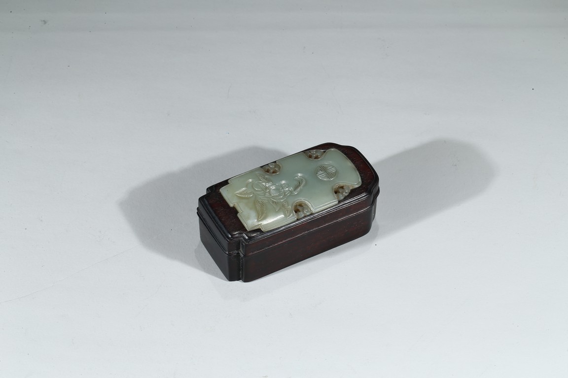 A ZITAN JADE EMBELLISHED BOX AND COVER 清 紫檀嵌玉蓋盒