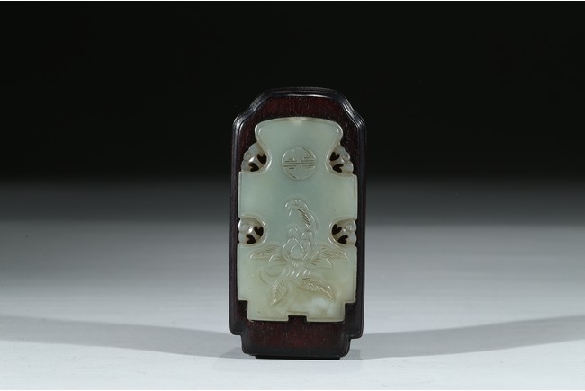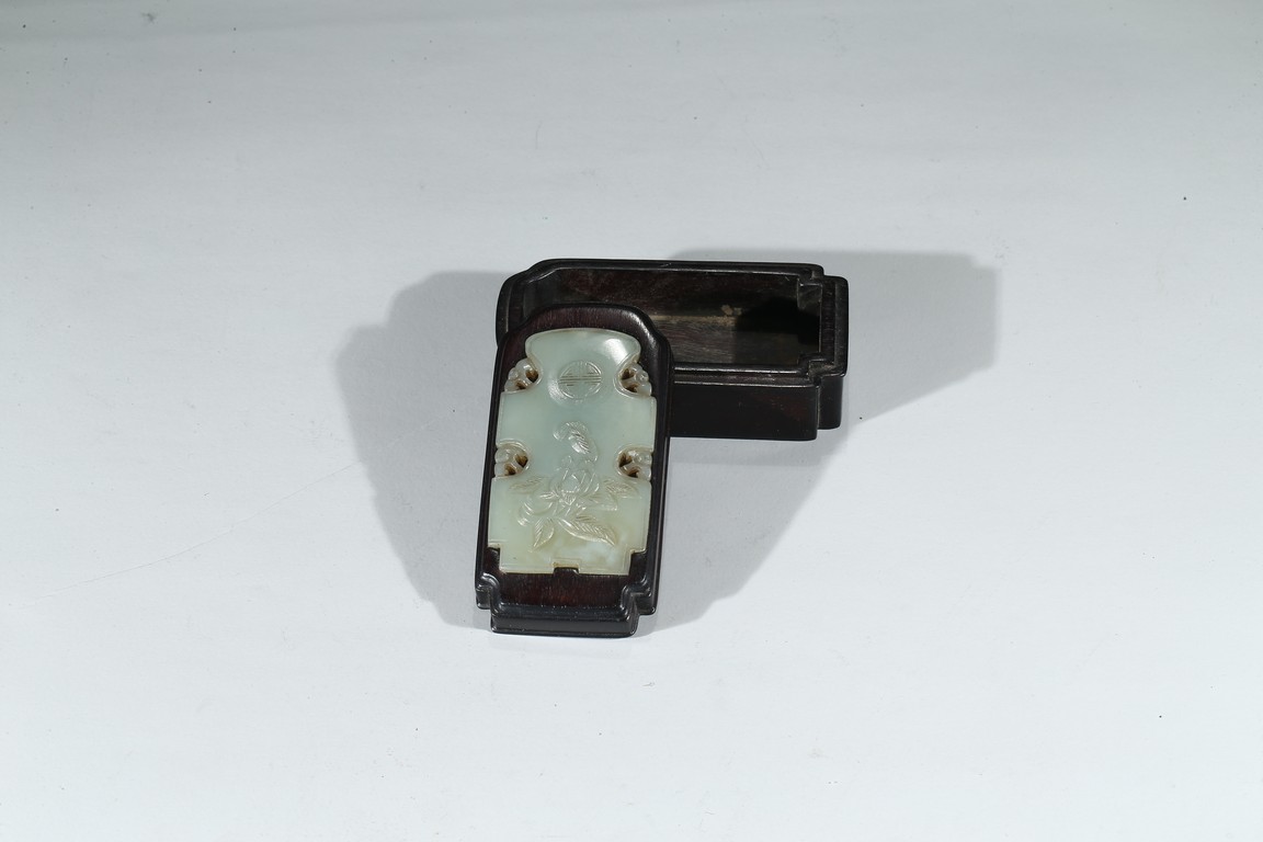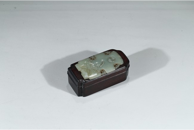 The rectangular box embellished with a qin-form jade plaque on the cover. Qing Dynasty period.