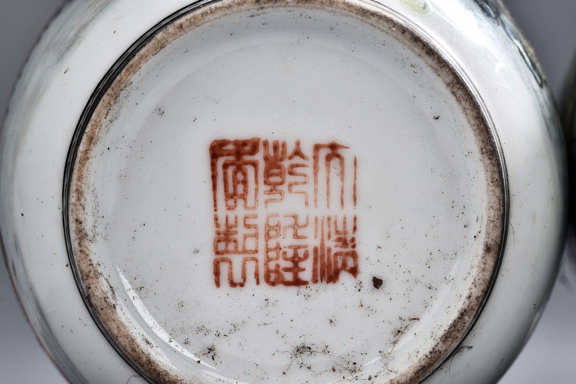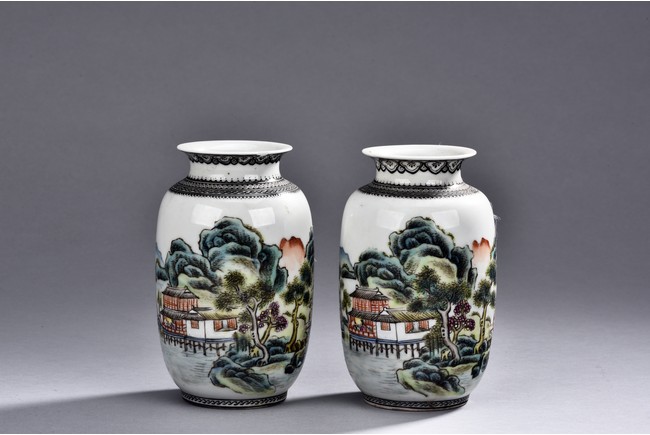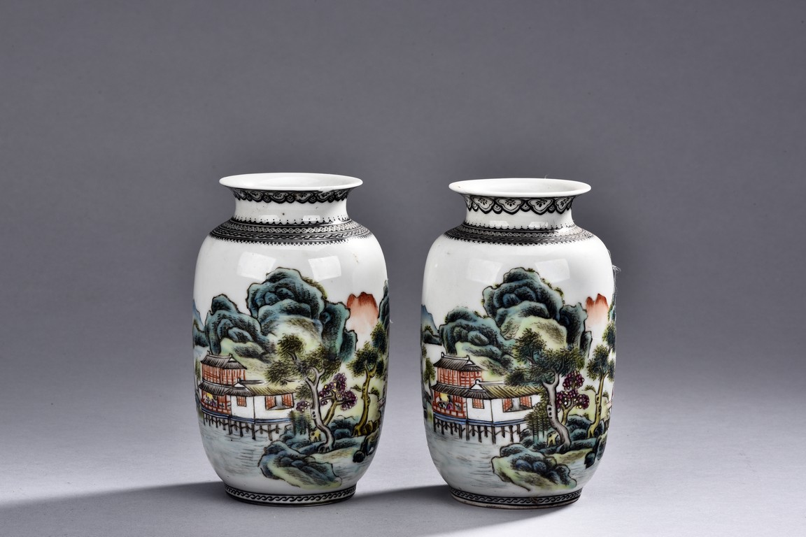 A PAIR OF FAMILLE ROSE JARS 民國早期 山水瓶 一對