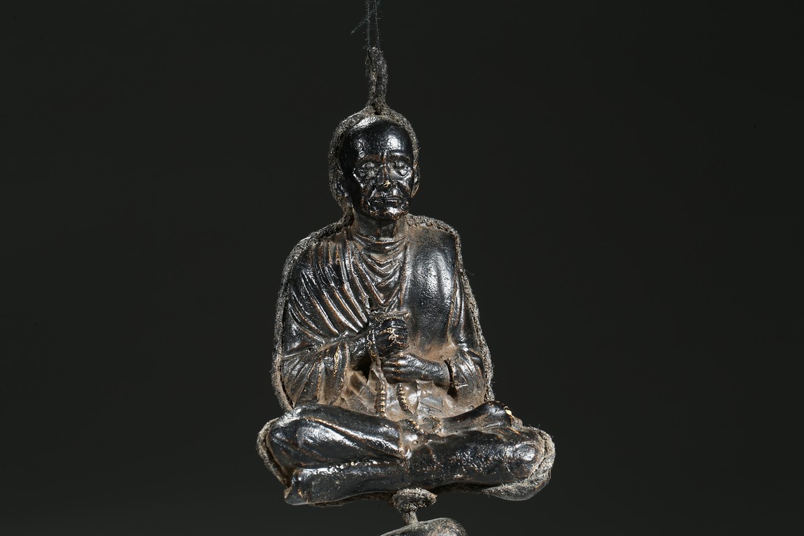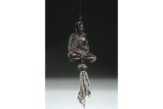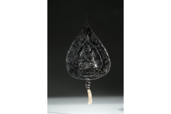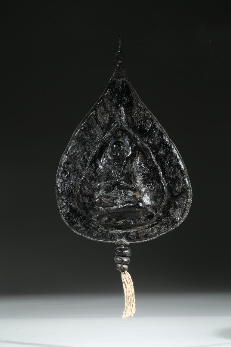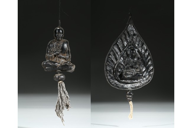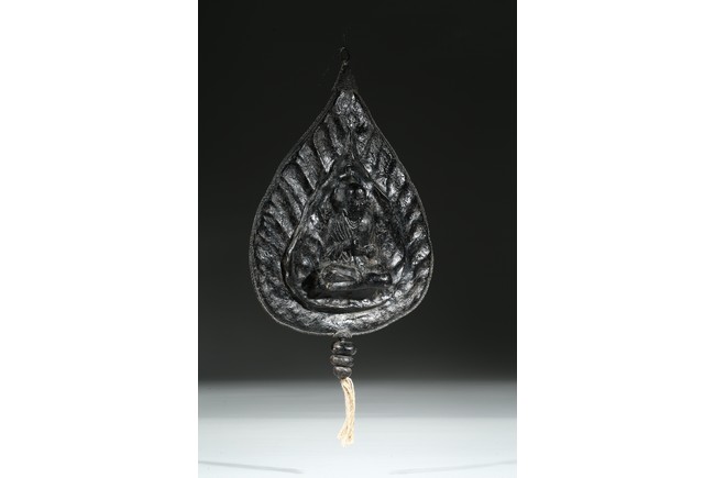 Comprising of an ascetic arhat figure and a luohan figure within leaf-shaped mandorla.