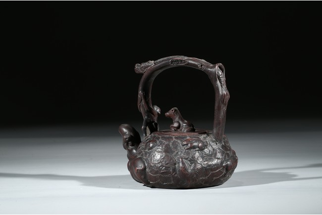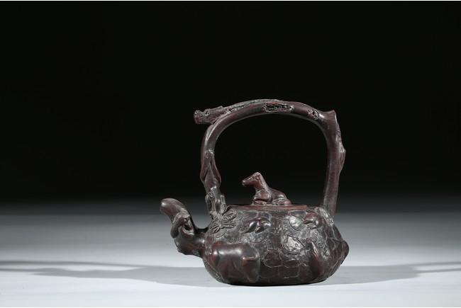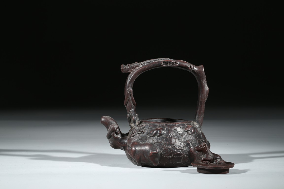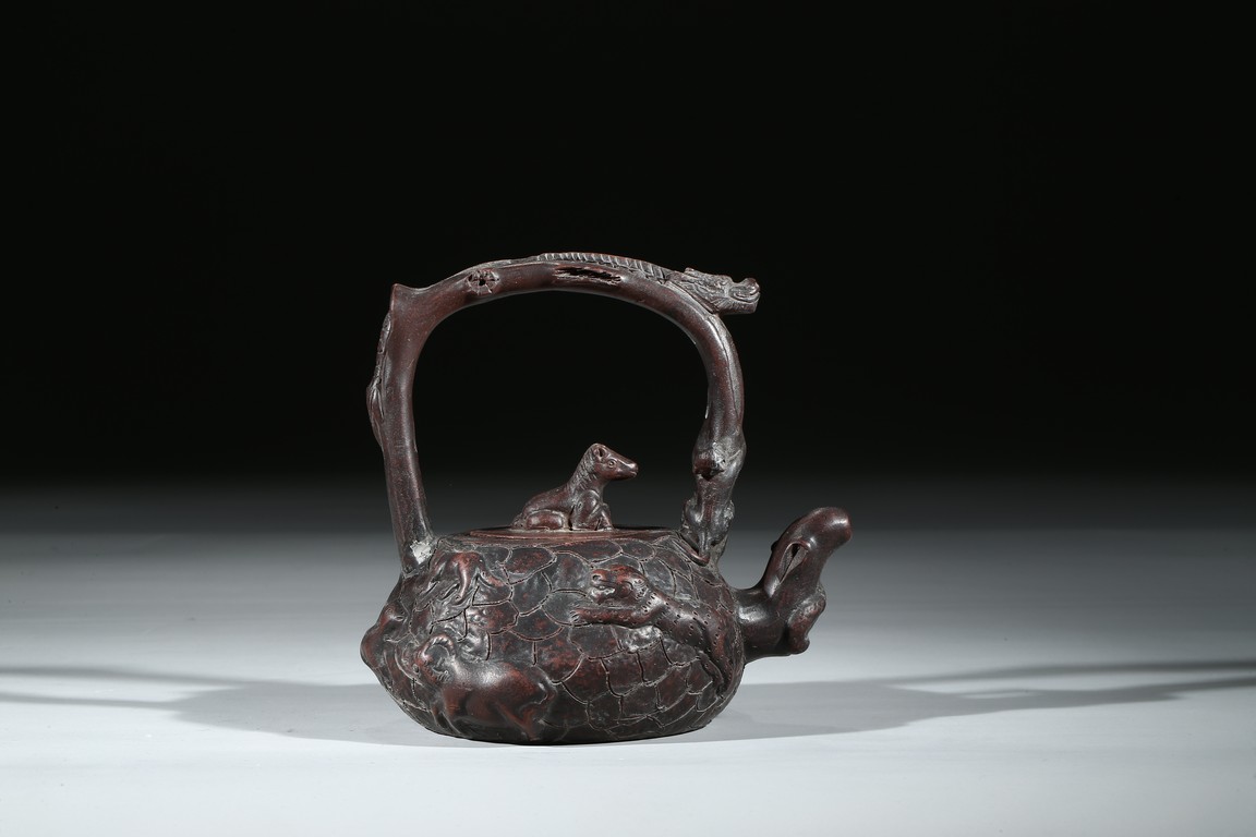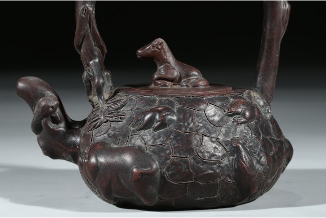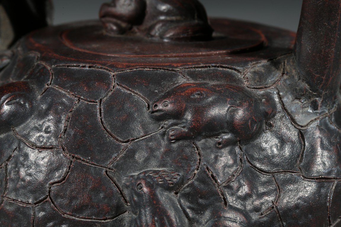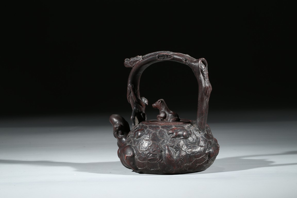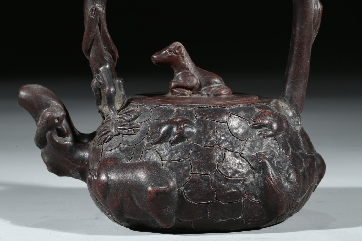 A YIXING 'TWELVE ZODIAC' TEAPOT 清 紫砂十二生肖提梁壺