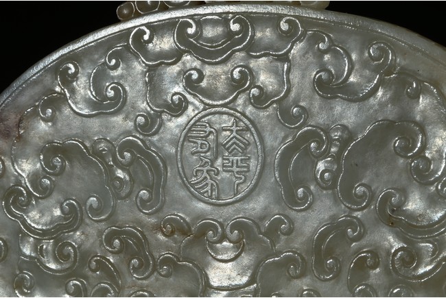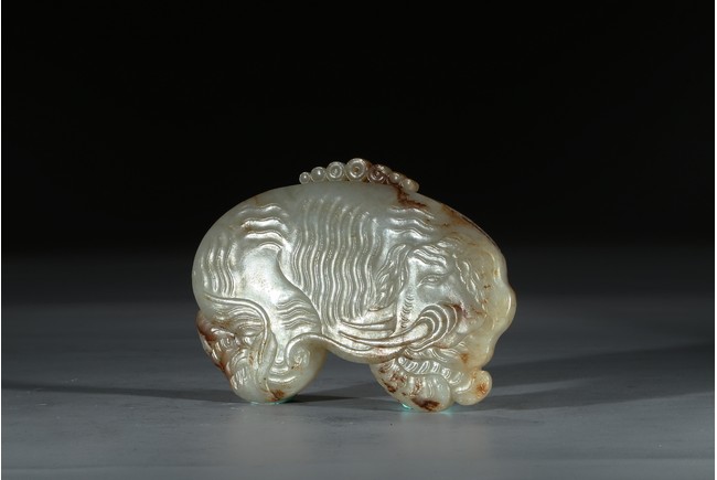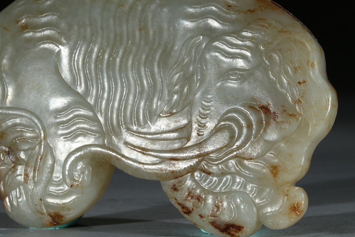 Modelled in the form of elephant to the front, the reverse inscribed with a four character 'Tai Ping You Xiang' mark within a circle amidst scrolled cloud pattern. Qing Dynasty period.