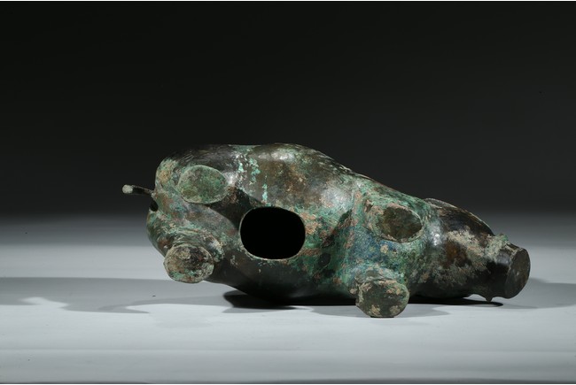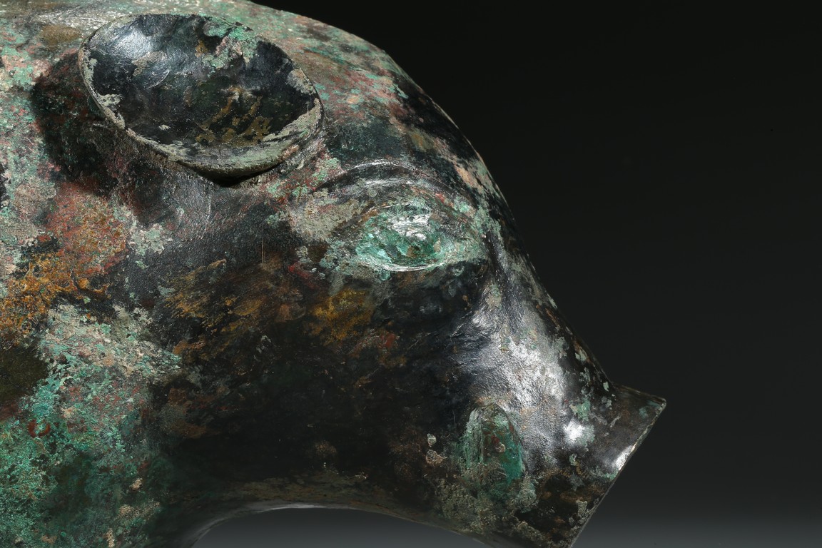 Provenance: Property from a private collection, Toronto, Canada 此青銅豬造型碩壯,四足平踏,腦袋較大,吻部突出,臀部略小翹,雙耳斜聳,背脊有鬢,尾下卷。其形象兇猛拙樸,面部逼真,神態炯炯有神。 來源: 加拿大多倫多私人藏家收藏