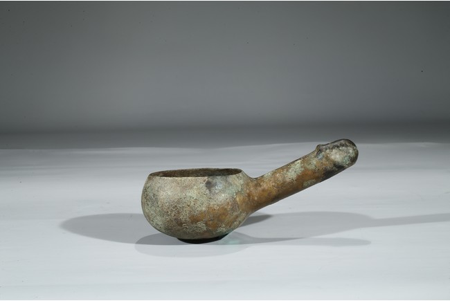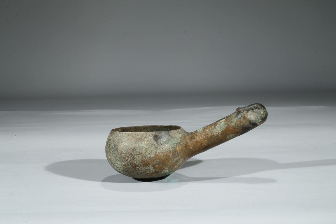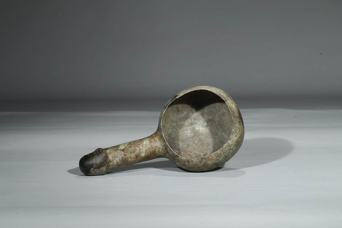 The spoon consisting of a globular deep sided bowl, with handle modelled in the form of penis. Northern China. Western Zhou Dynasty period.