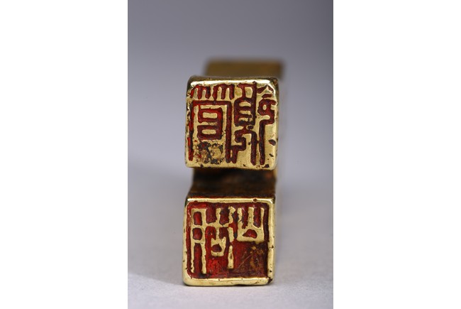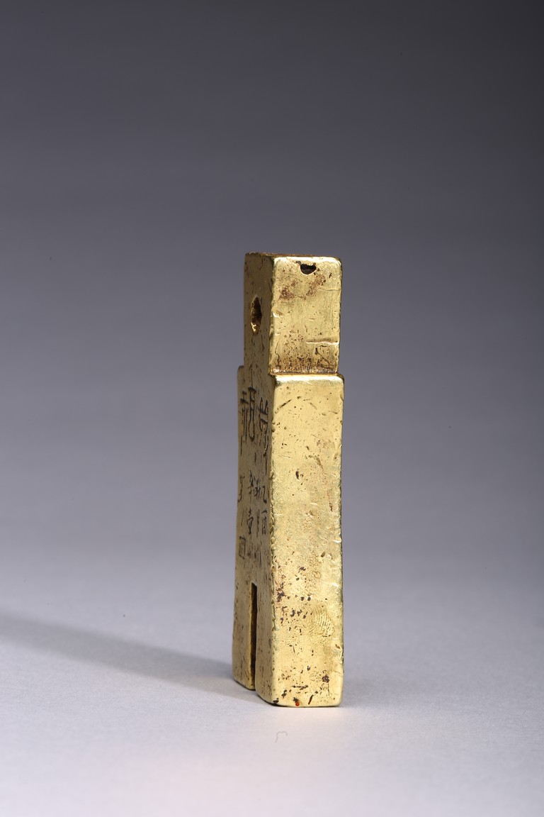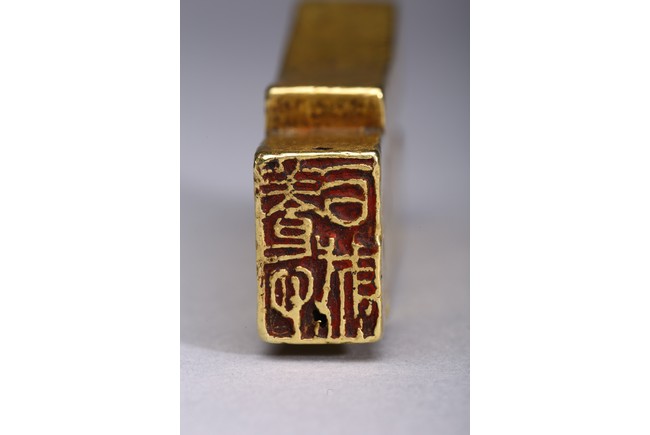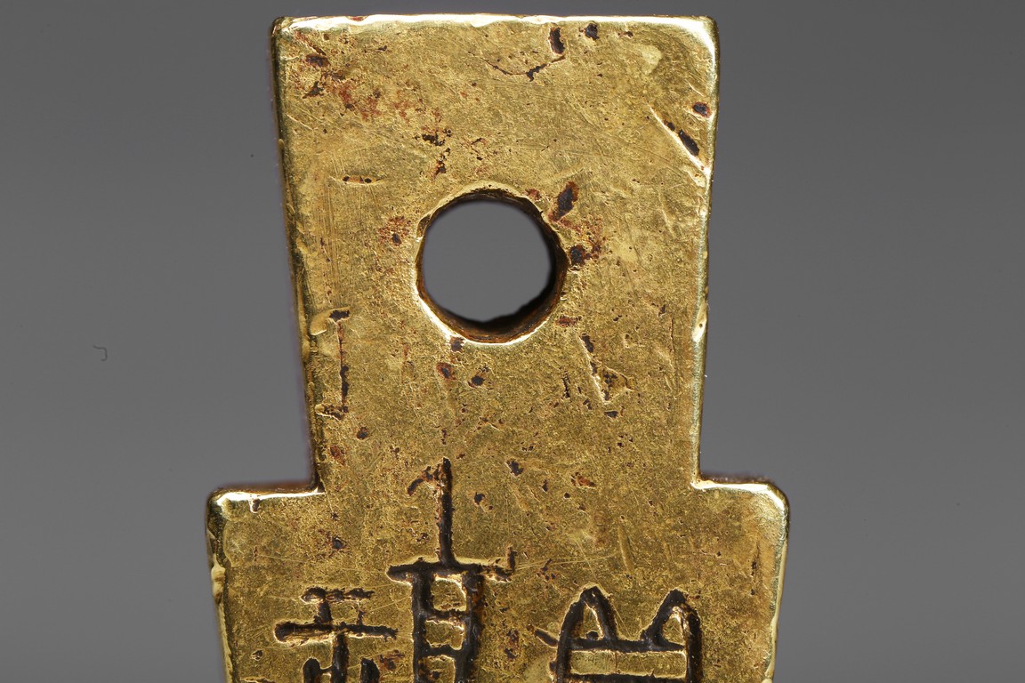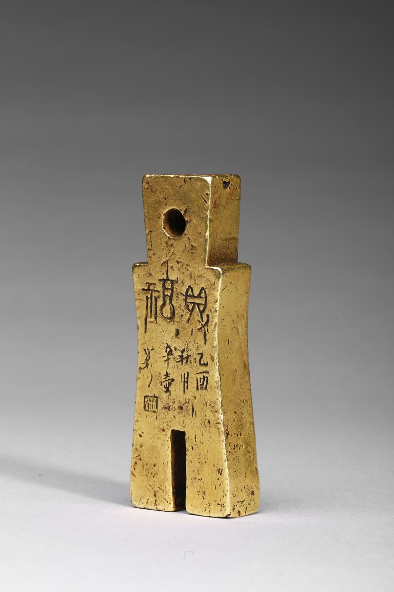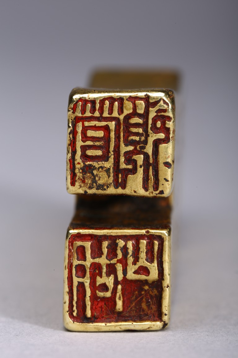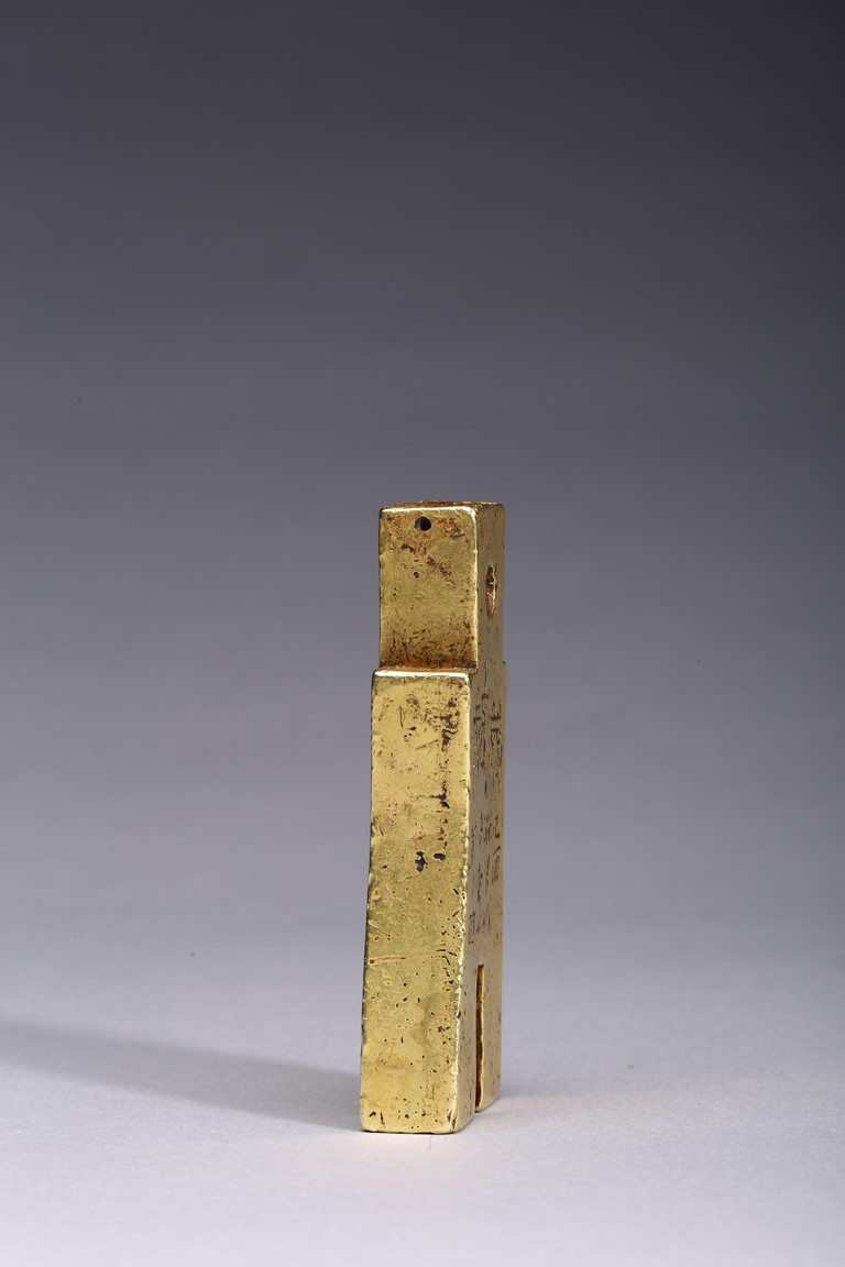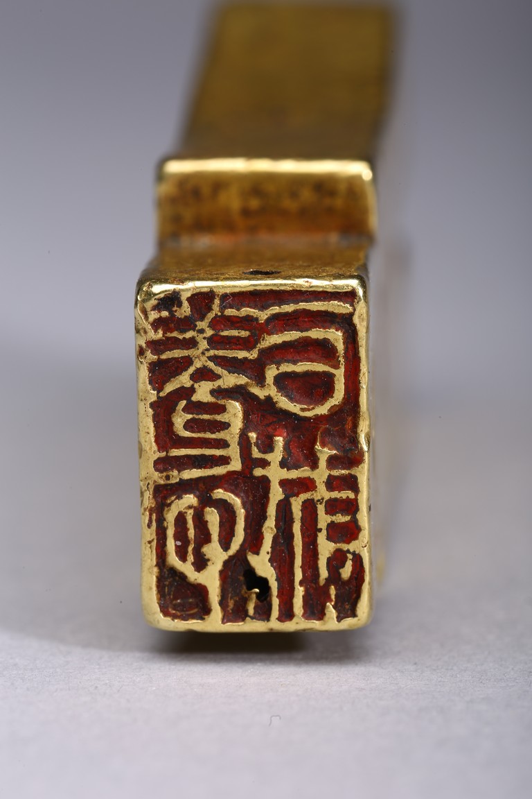 Provenance: Property from a Nevada private collection 此拍品:步幣形金印章,字跡清晰,布局合理,金印章采用戰國及漢代錢幣形狀,為名家精雕細琢而成。 來源: 內華達州私人藏家提供