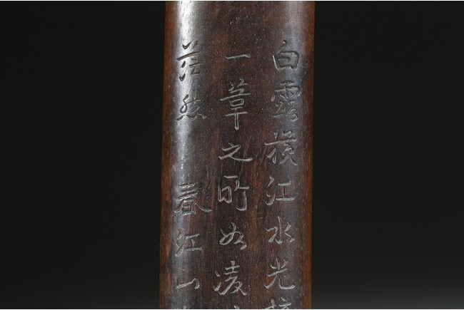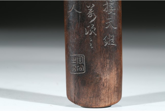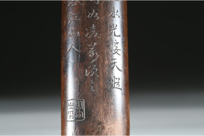 The armrest carved with a poetic inscription and with one seal mark, signed with four character Chun Jiang Shan Ren. Qing Dynasty period.