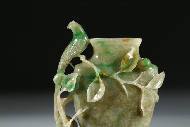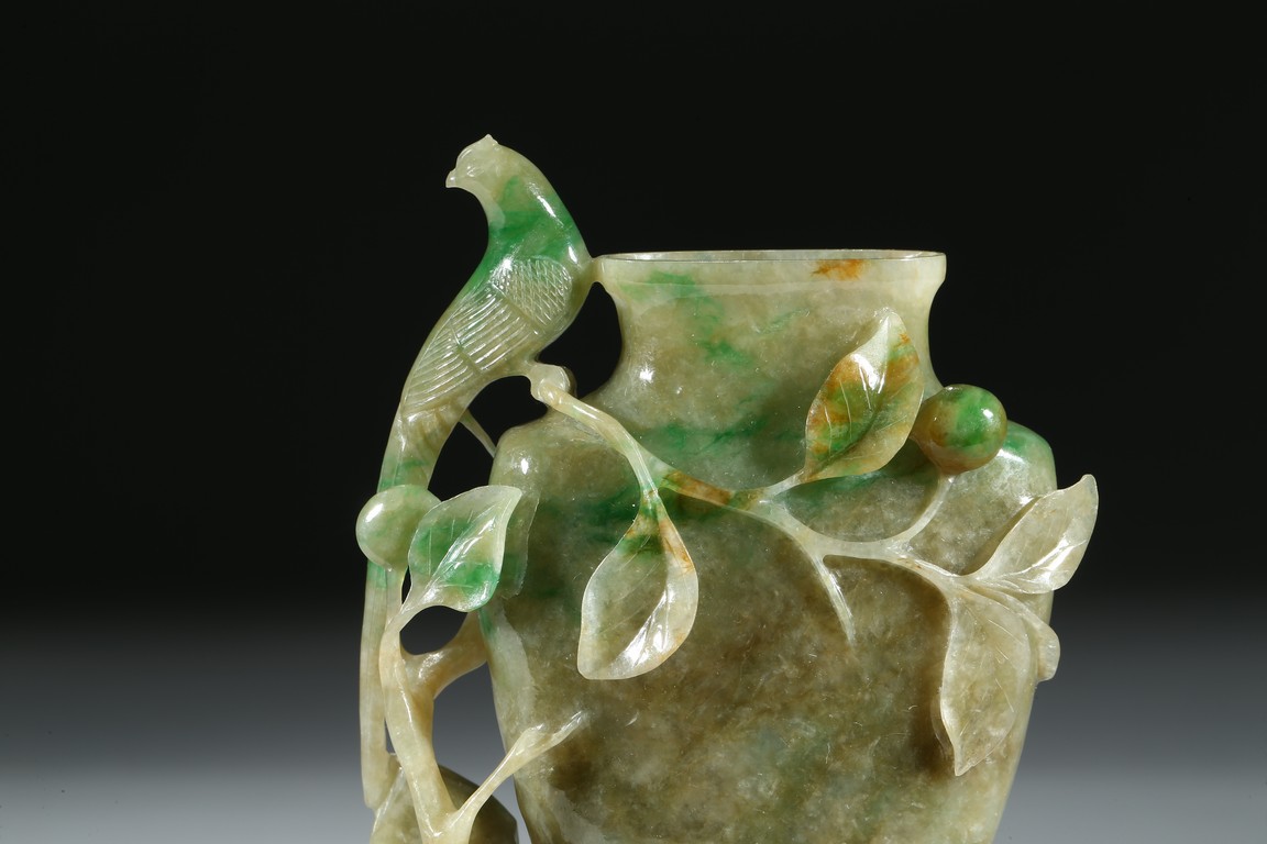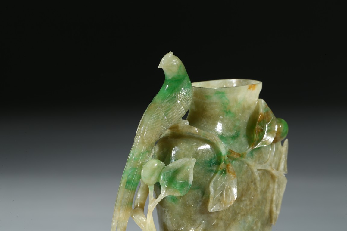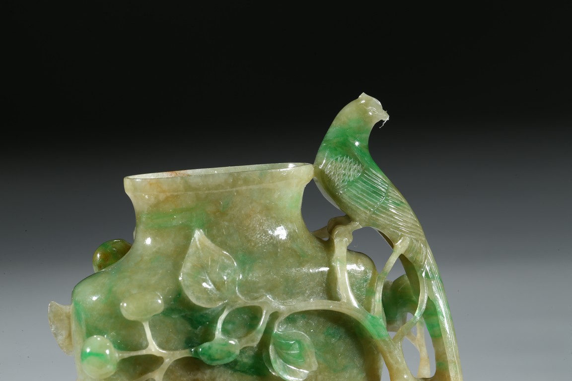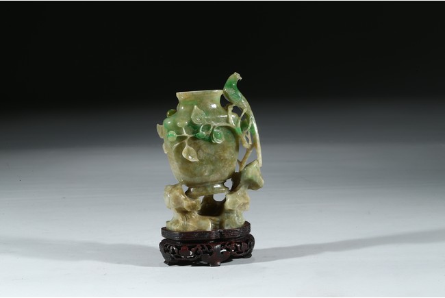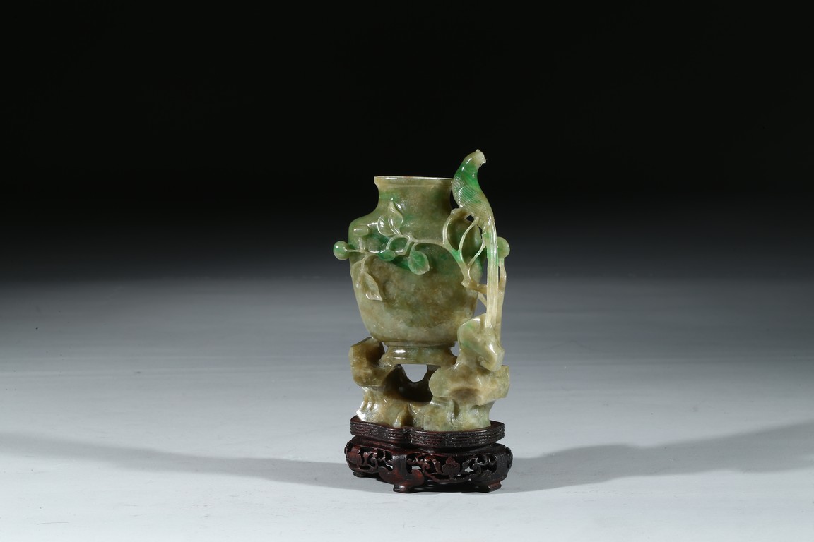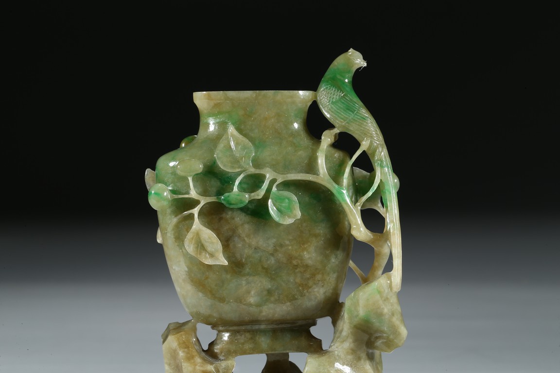 Carved in the form of a vase with a phoenix perching on the flower branch issuing from the base rockwork. Qing Dynasty period.