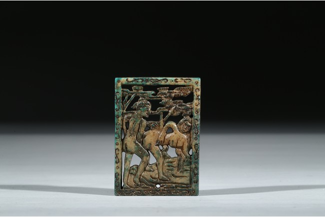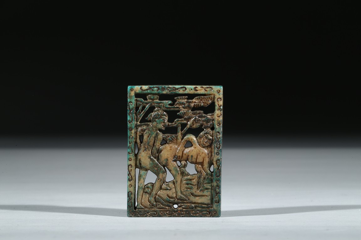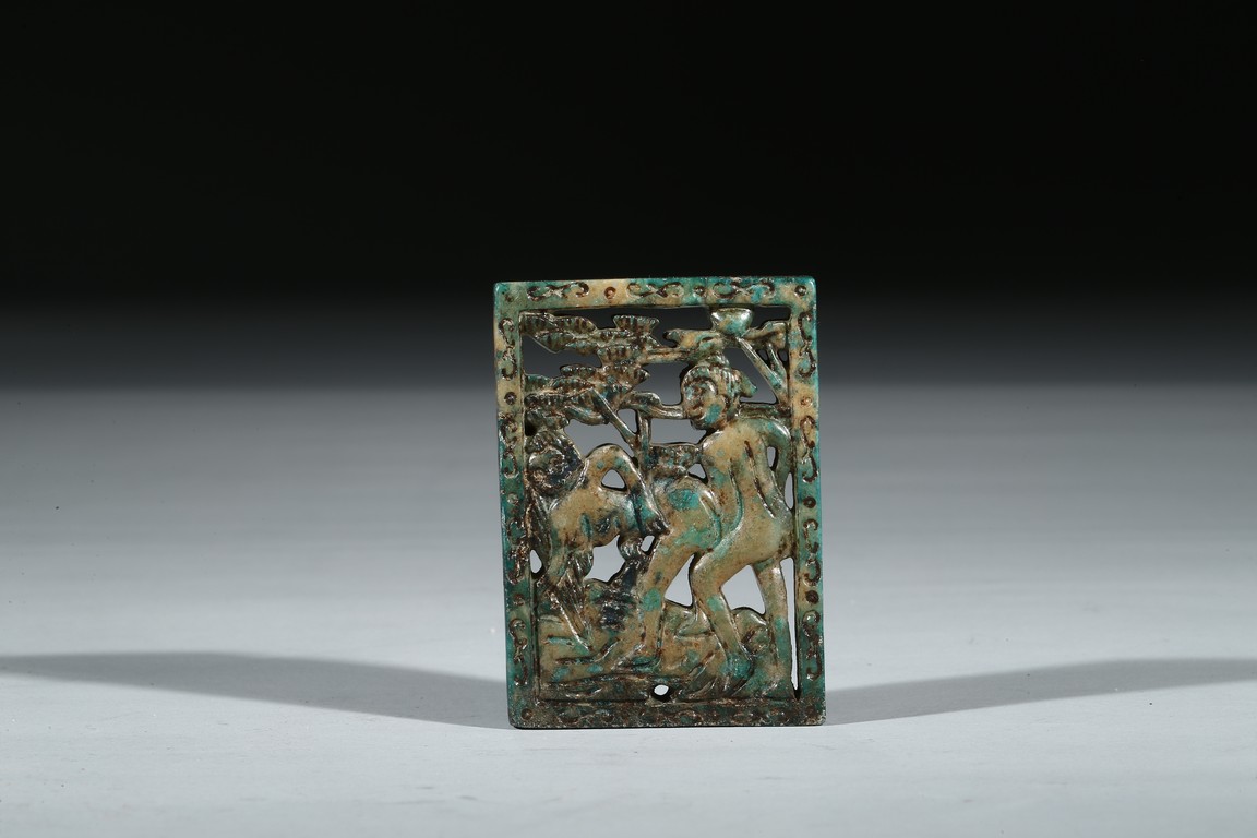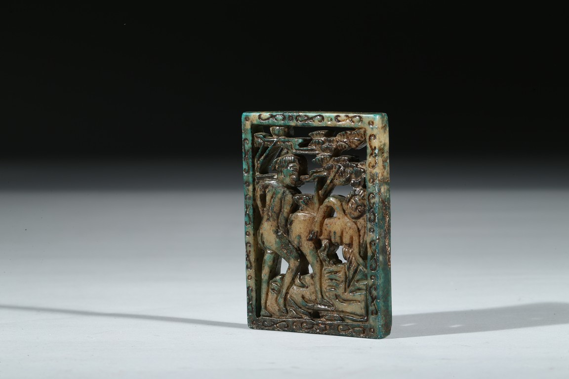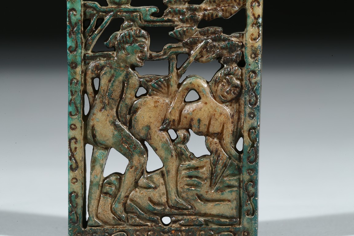 AN OPENWORK 'EROTIC FIGURES' PLAQUE 民國 鏤空玉雕春宮掛牌