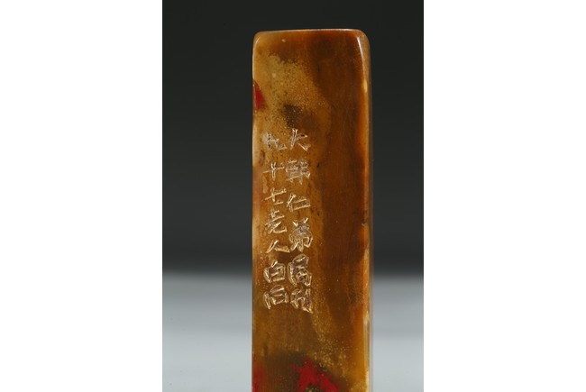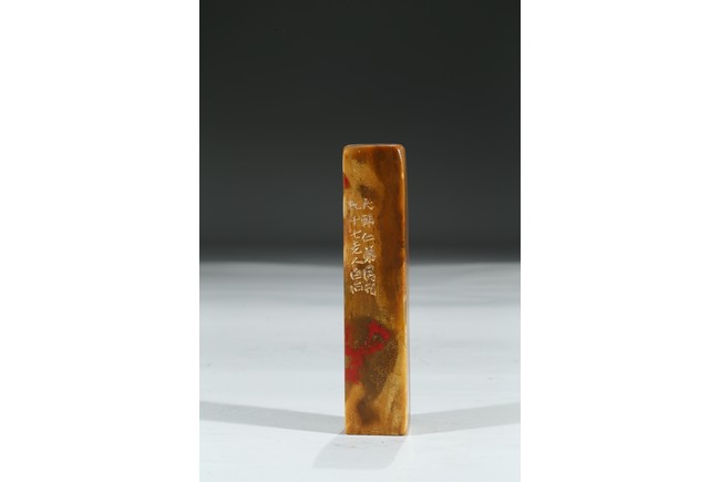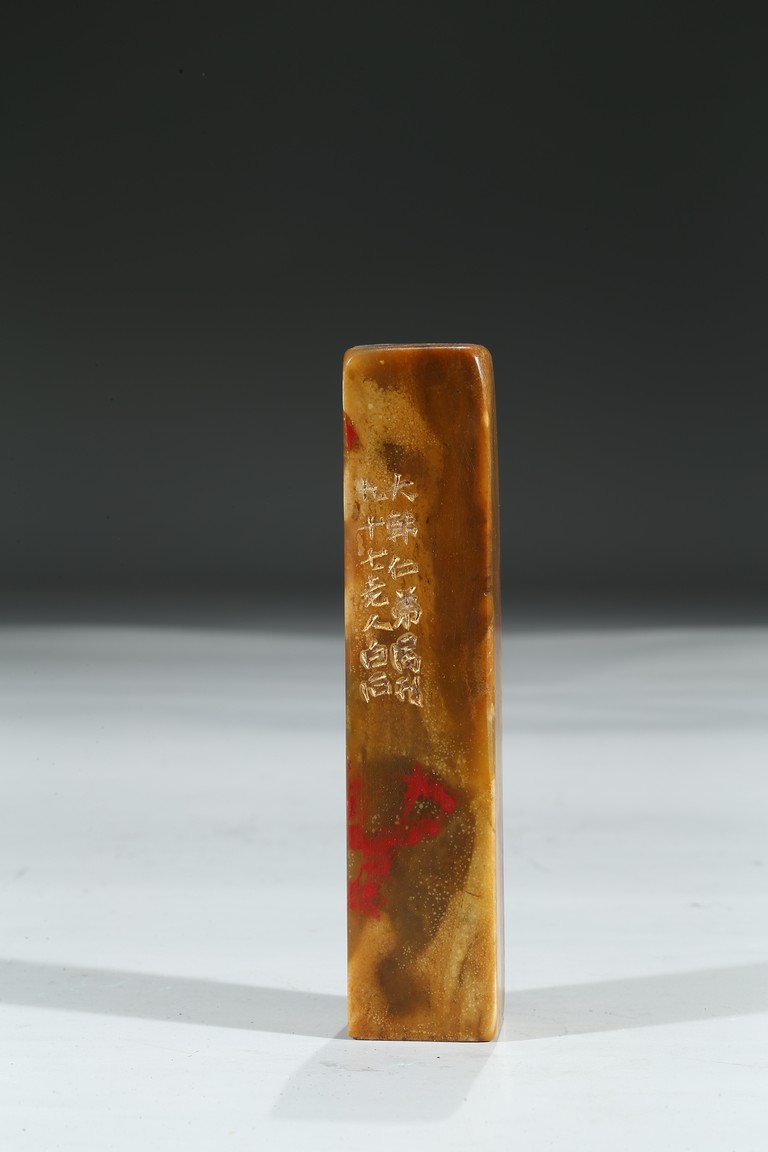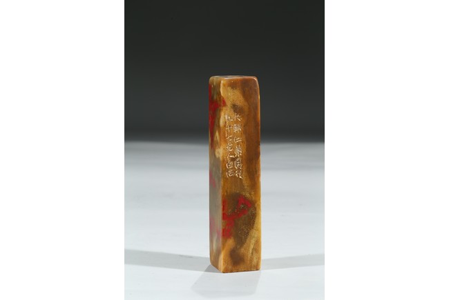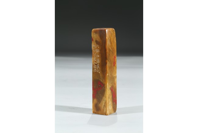 Of rectangular form, exterior inscribed and seal base carved with four characters.