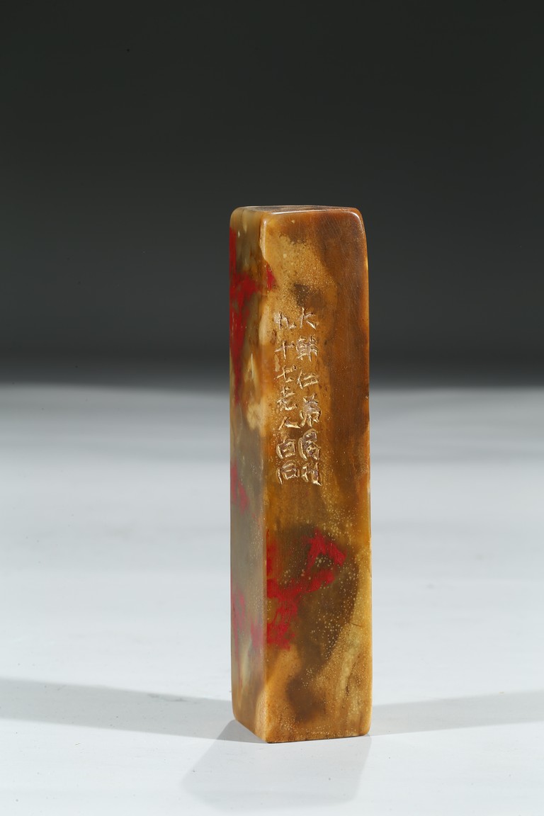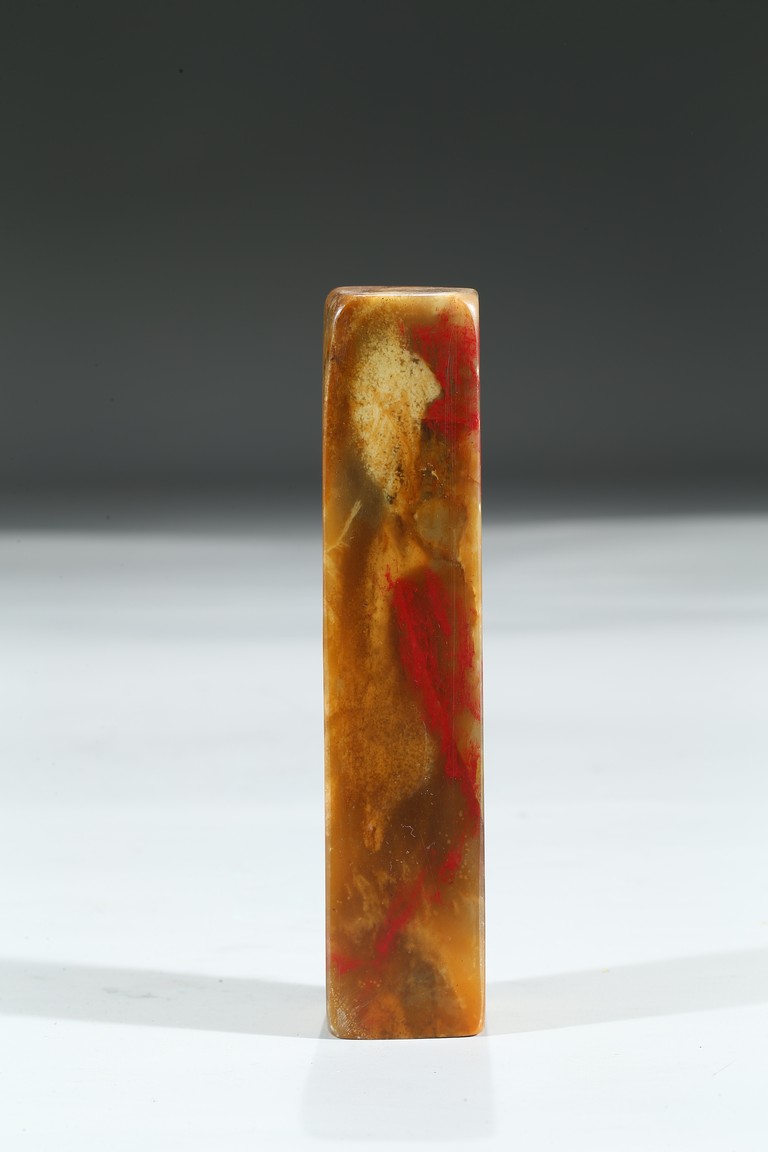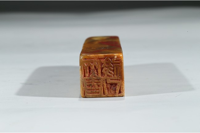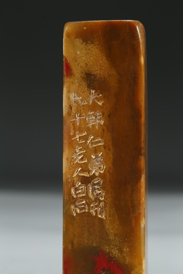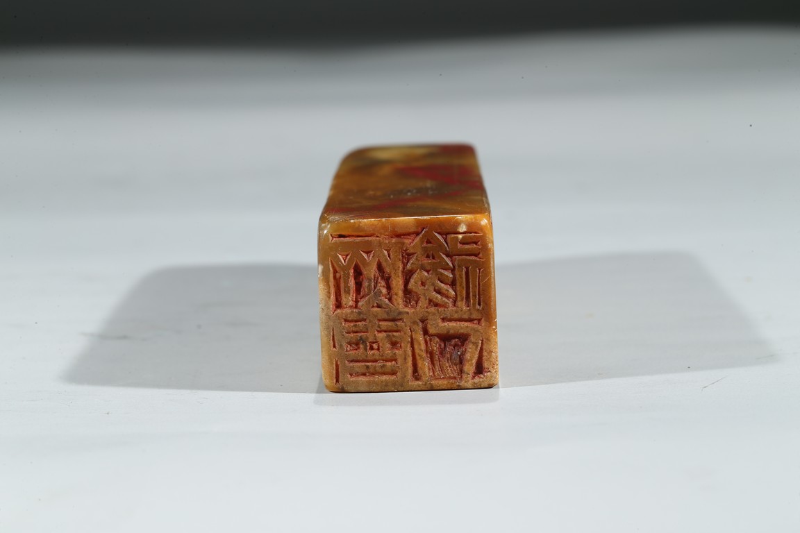 A SOAPSTONE INSCRIBED SEAL 雞血石印章