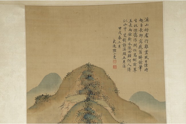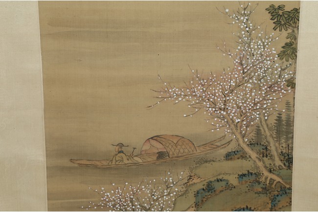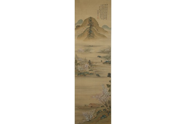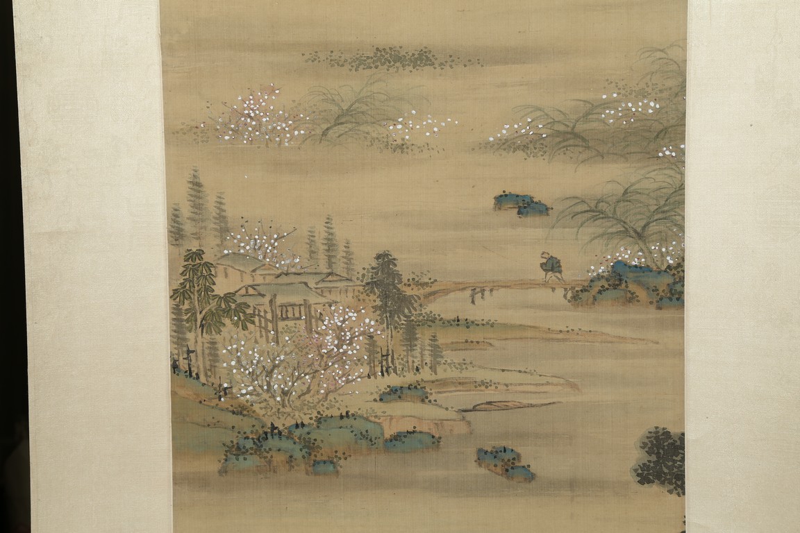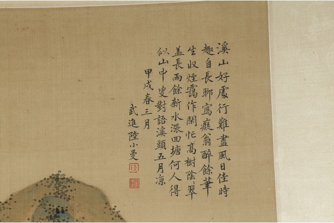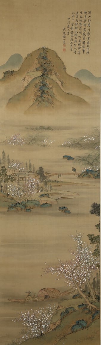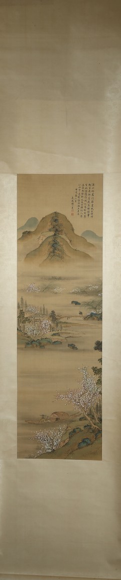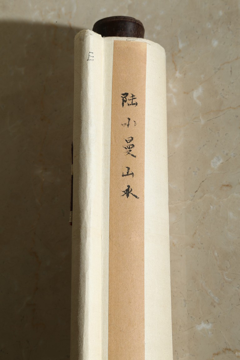 Ink and color on silk. Landscape.Hanging scroll. Inscribed and signed Lu Xiaoman, with two seals of the artist.
