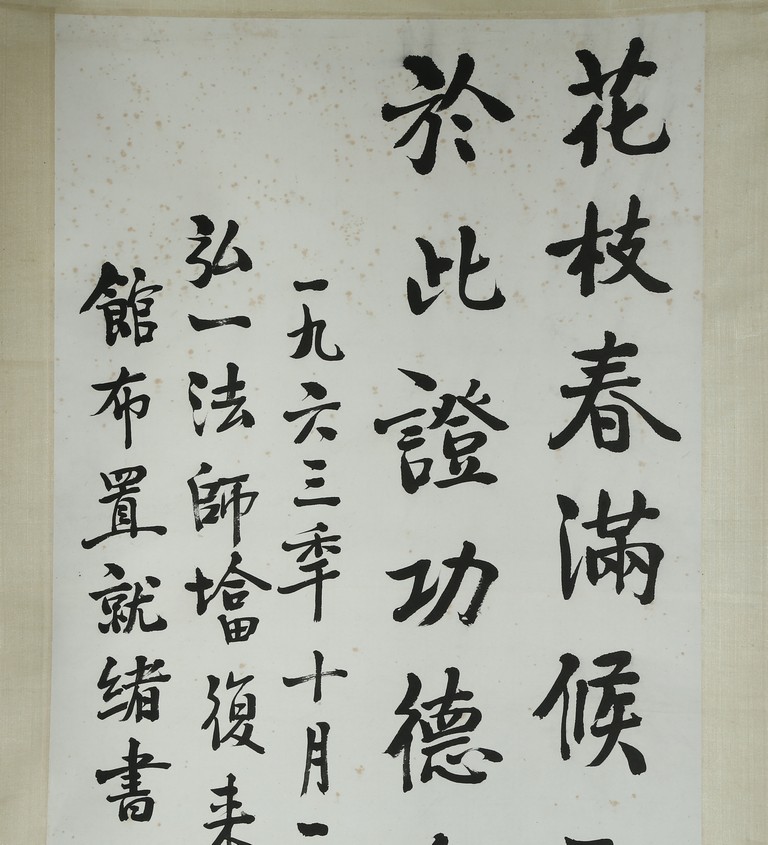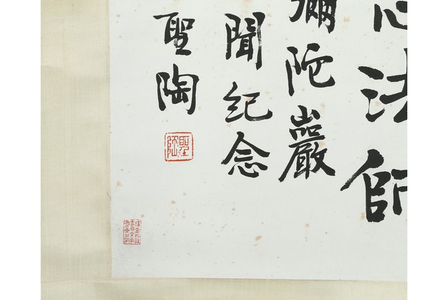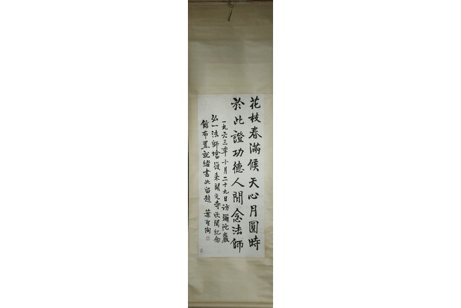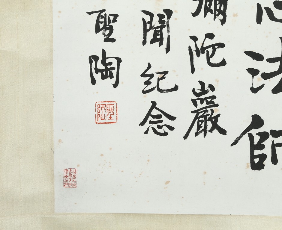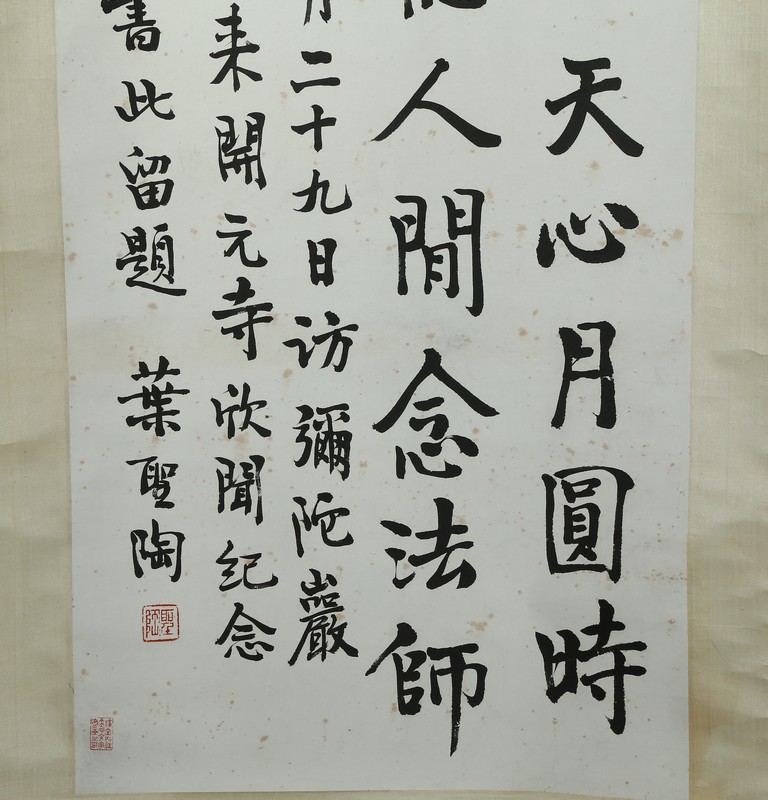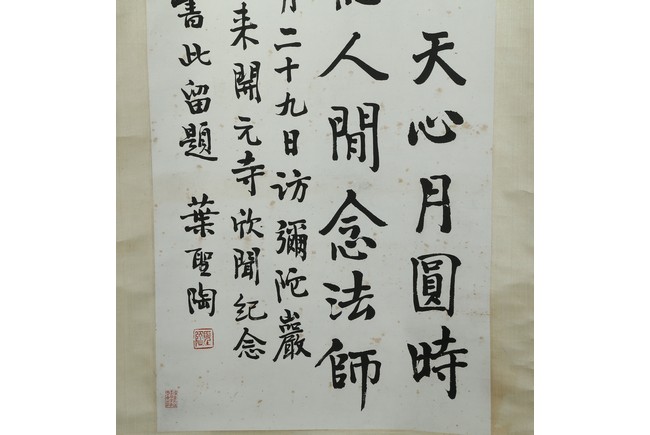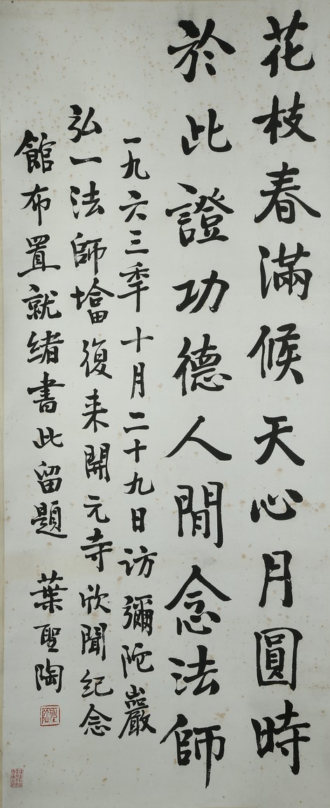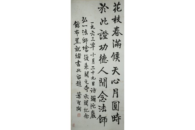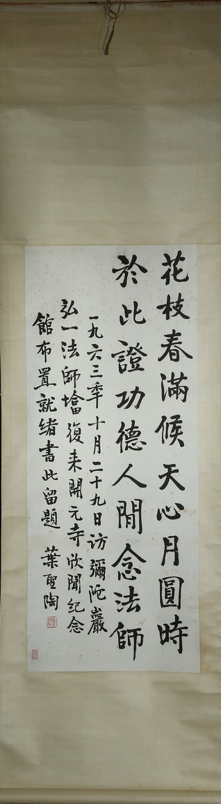Ink on paper. Running script calligraphy. Hanging scroll. Signed Ye Shengtao with two seals of the artist.