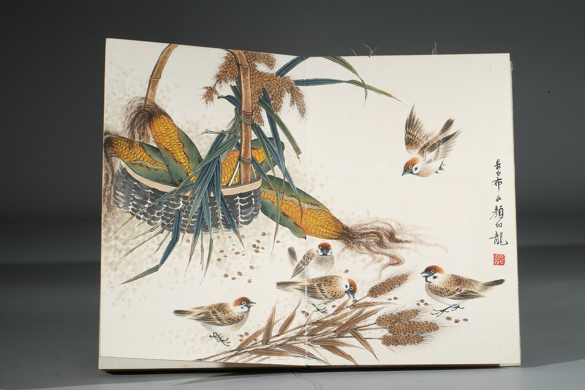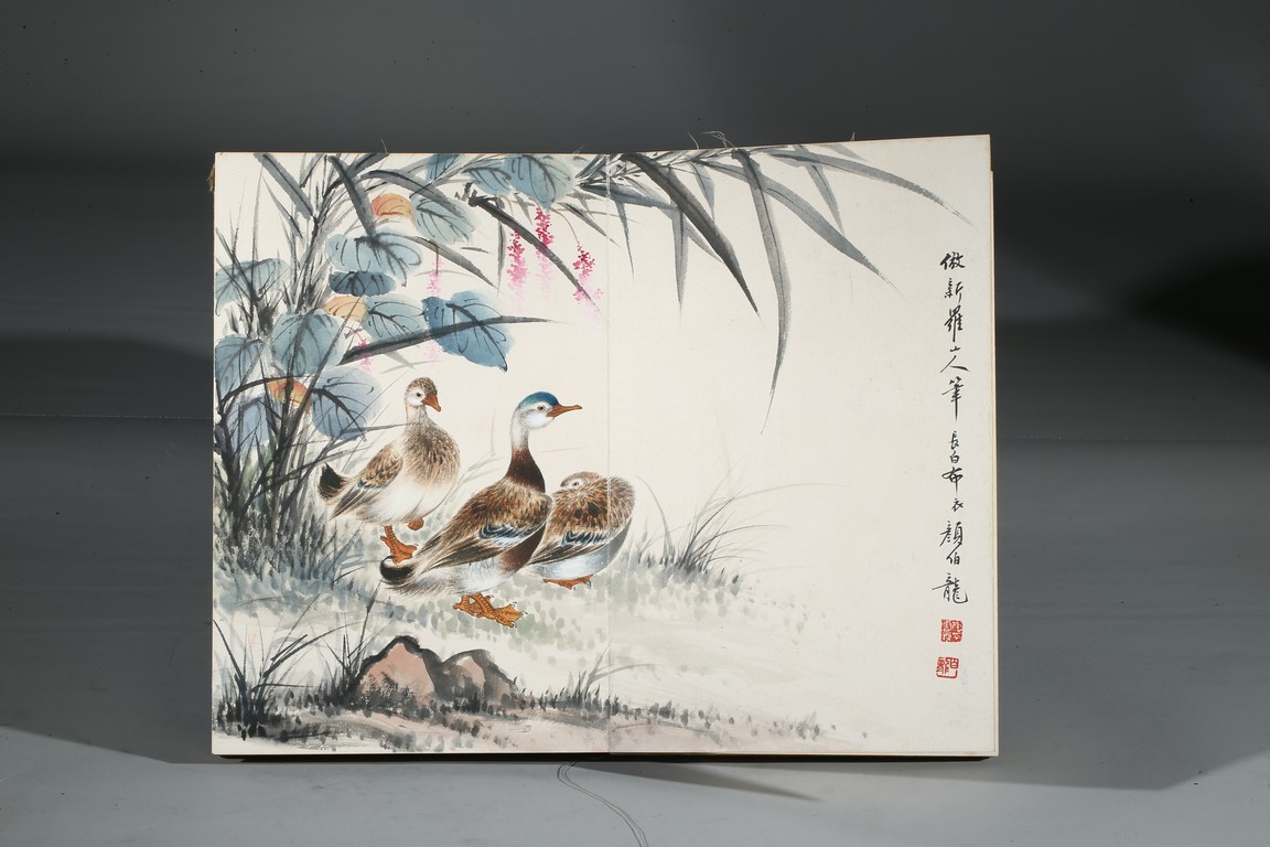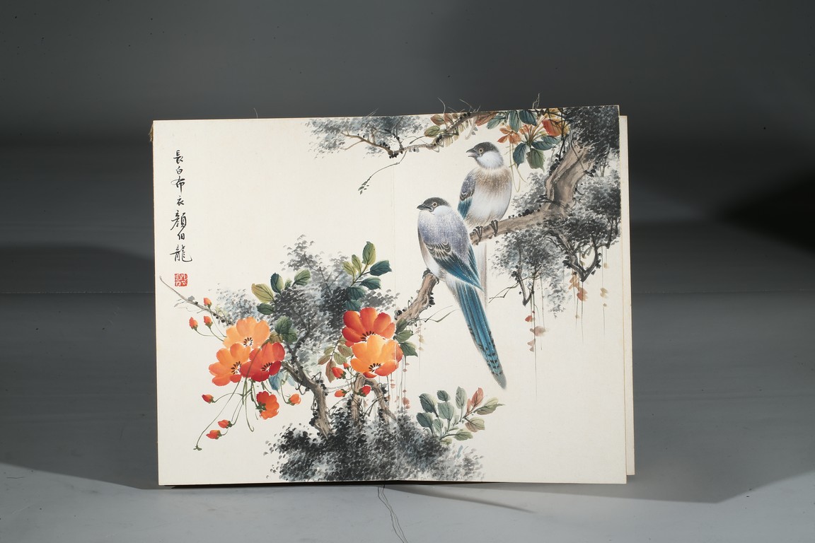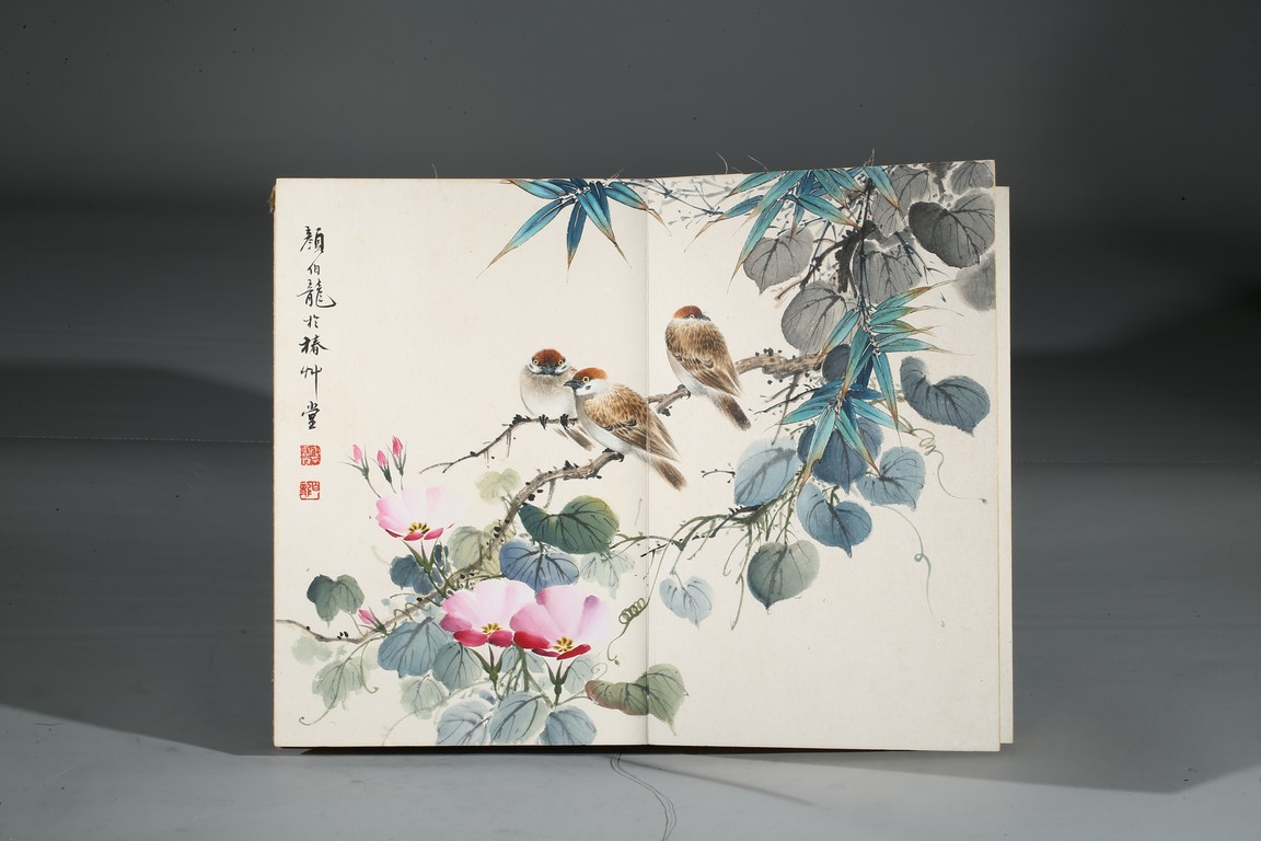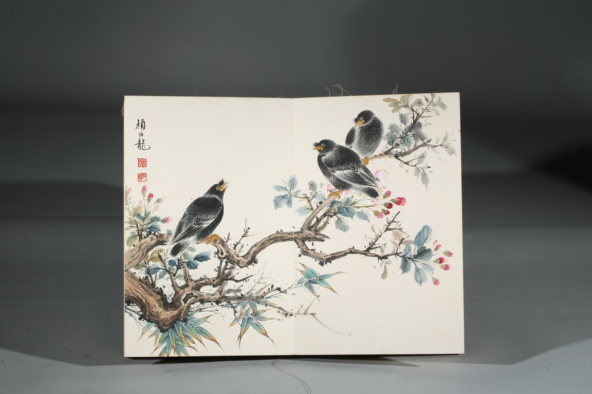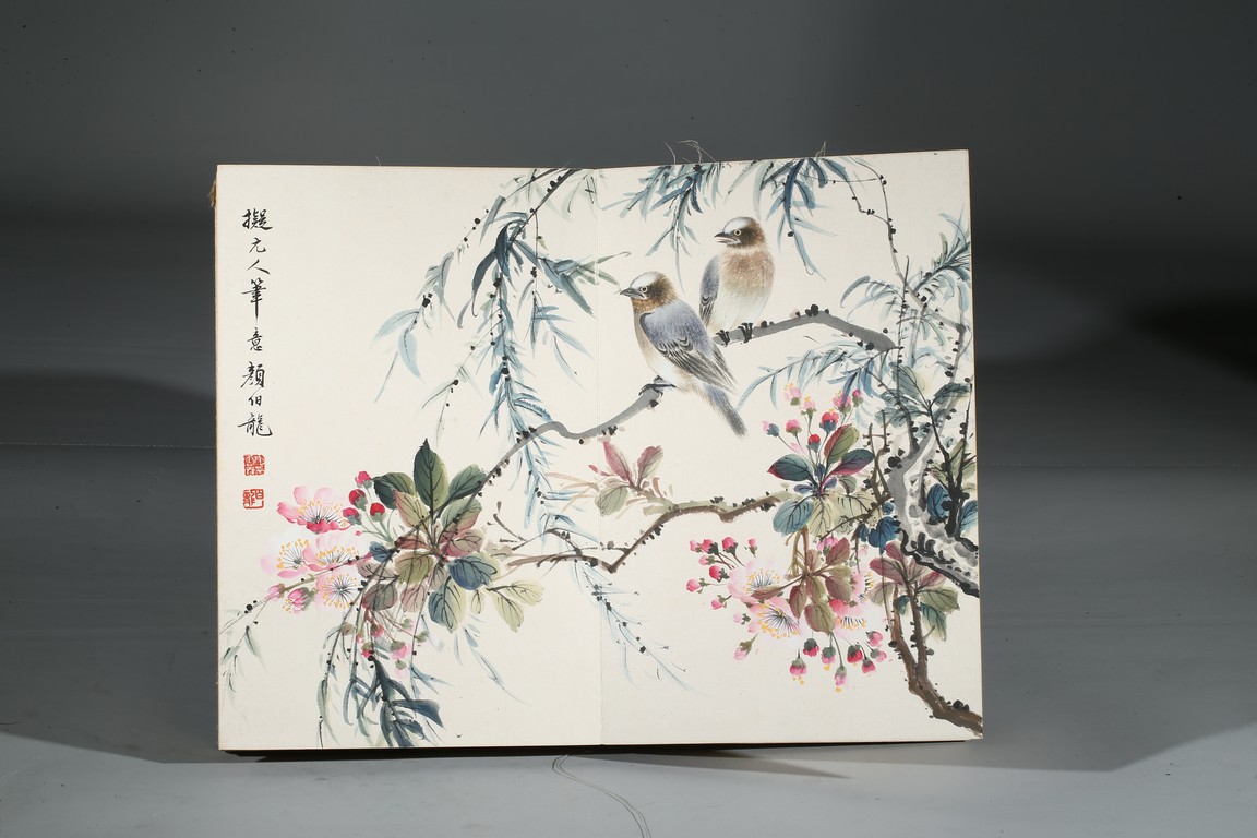 Ink and color on paper. Flowers,Birds,and calligraphy. Fifteen leaves. Signed Yan Bolong and with various artists' inscriptions.