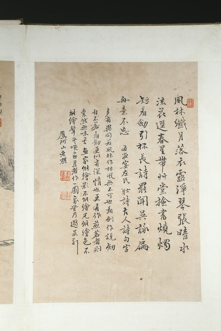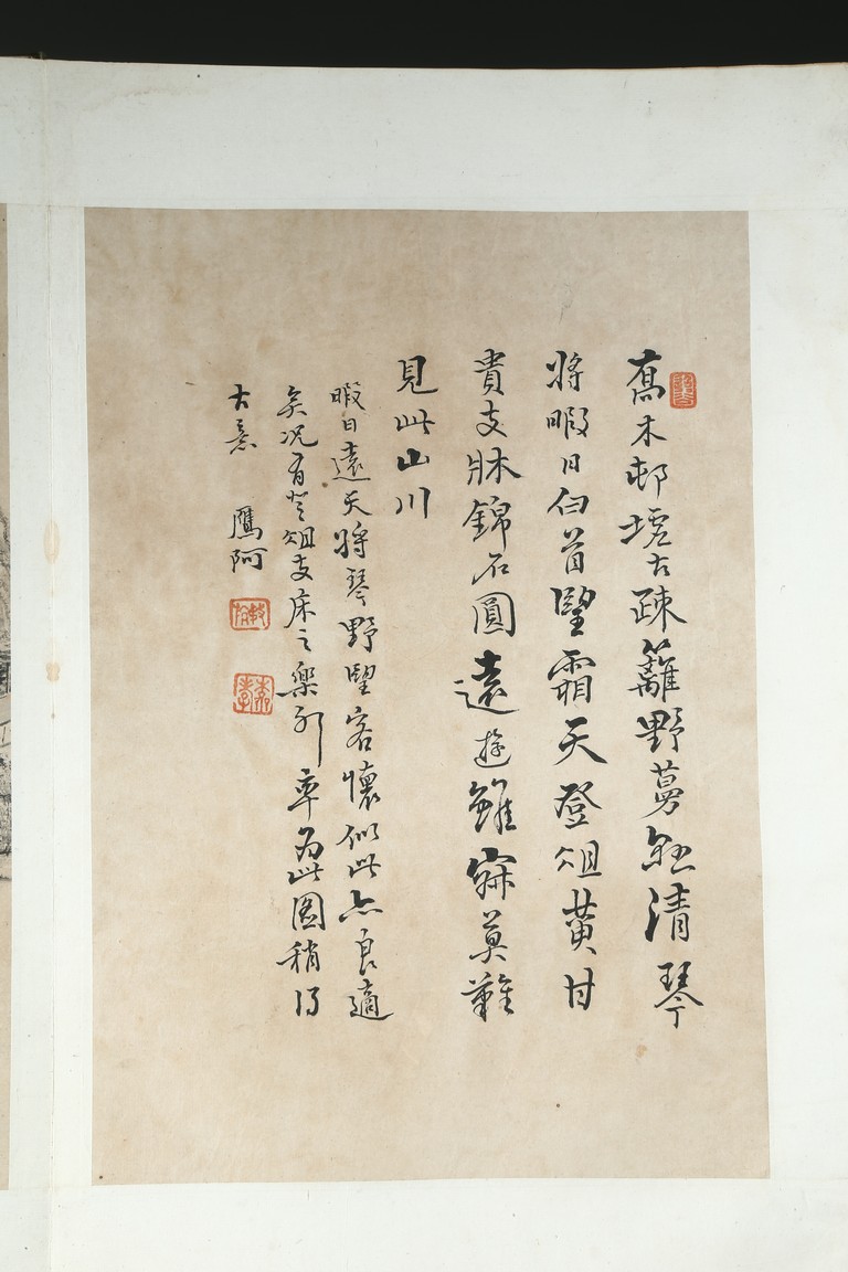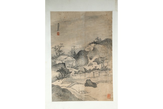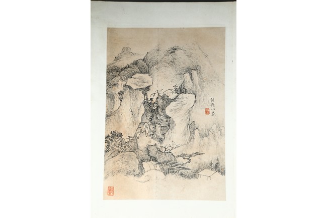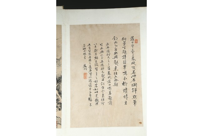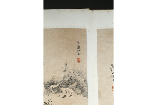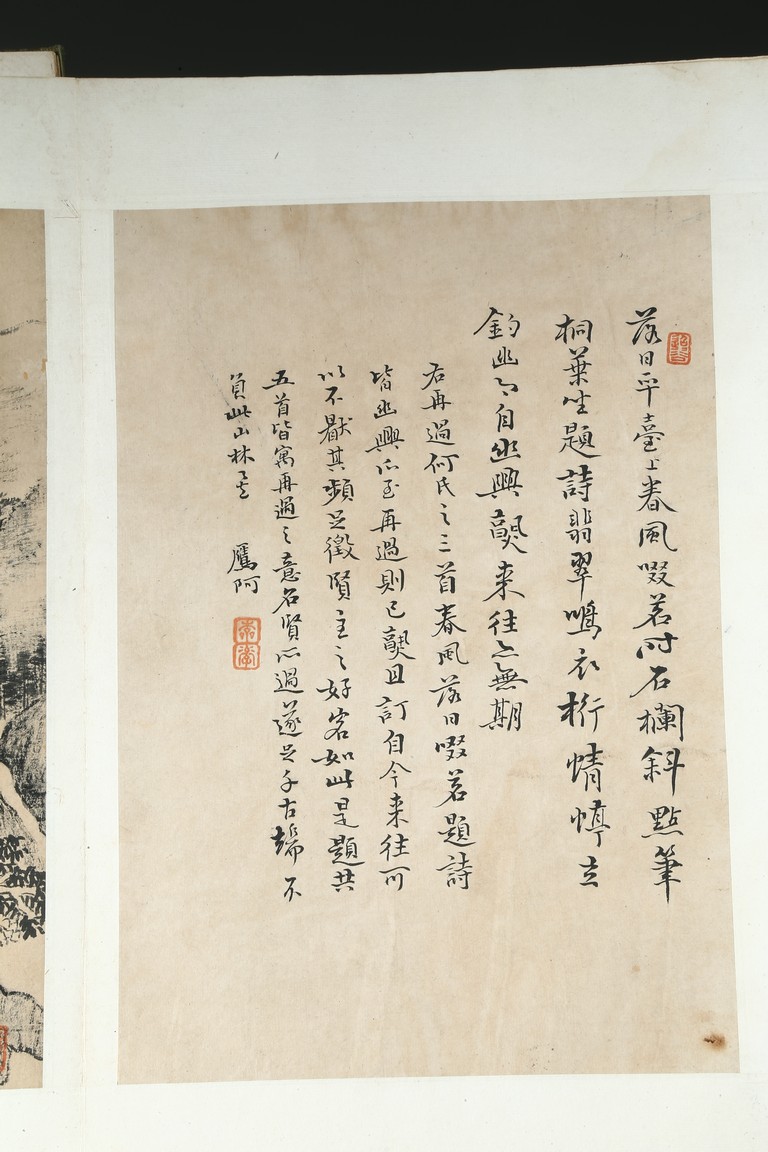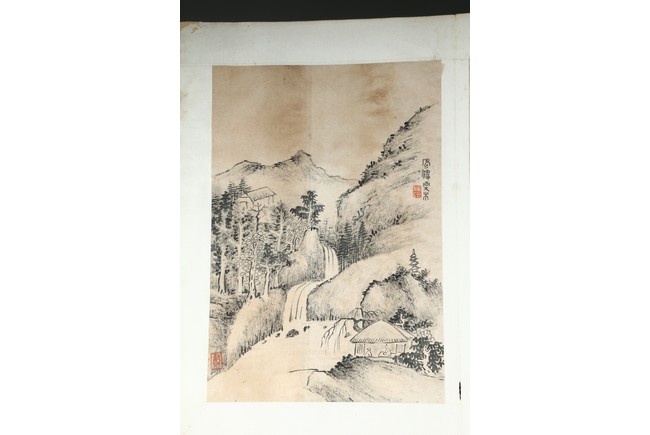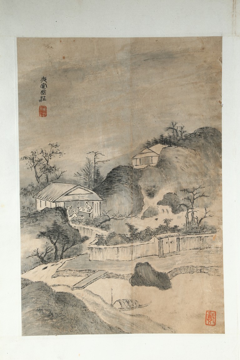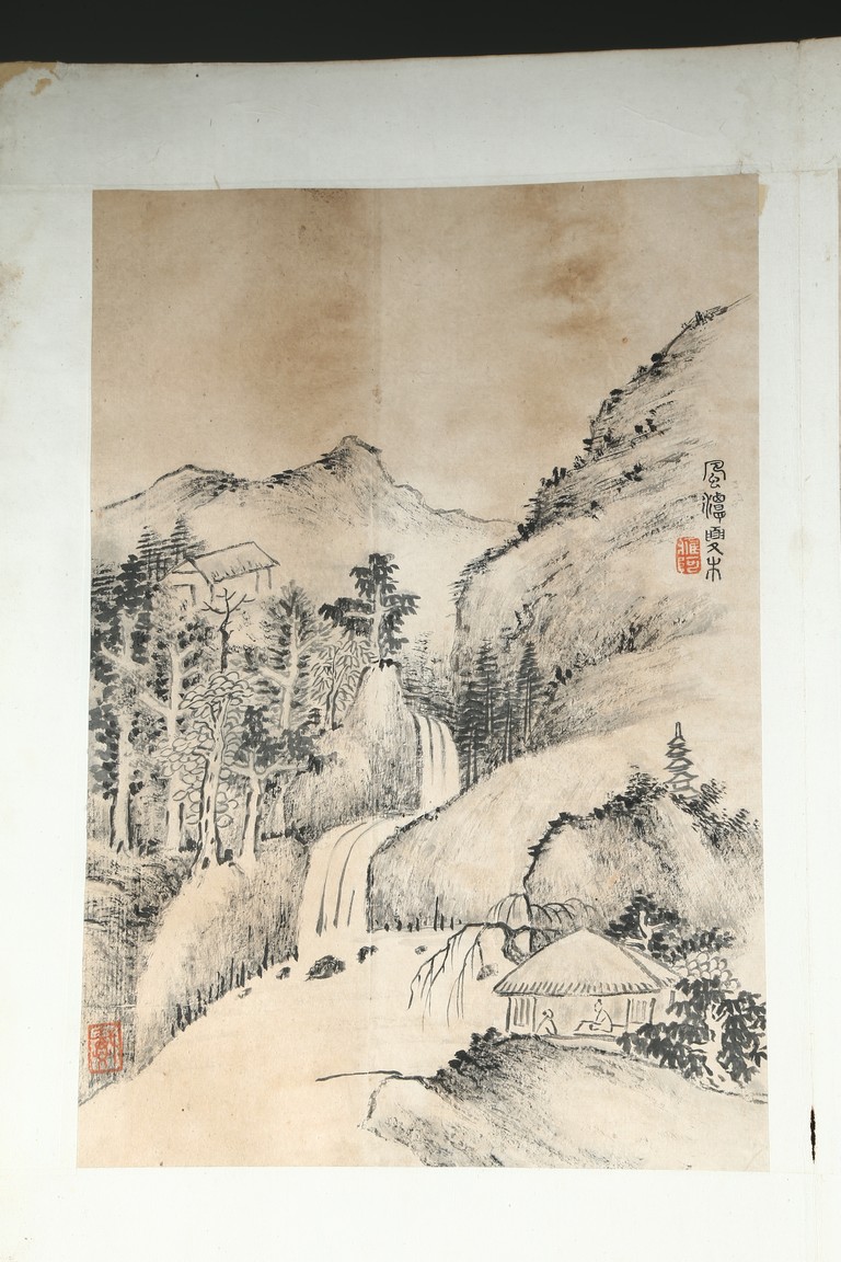 Ink on paper. Landscape and running script. Ten-leaf album painting. Signed by Dai Benxiao and with four seals of the artist.