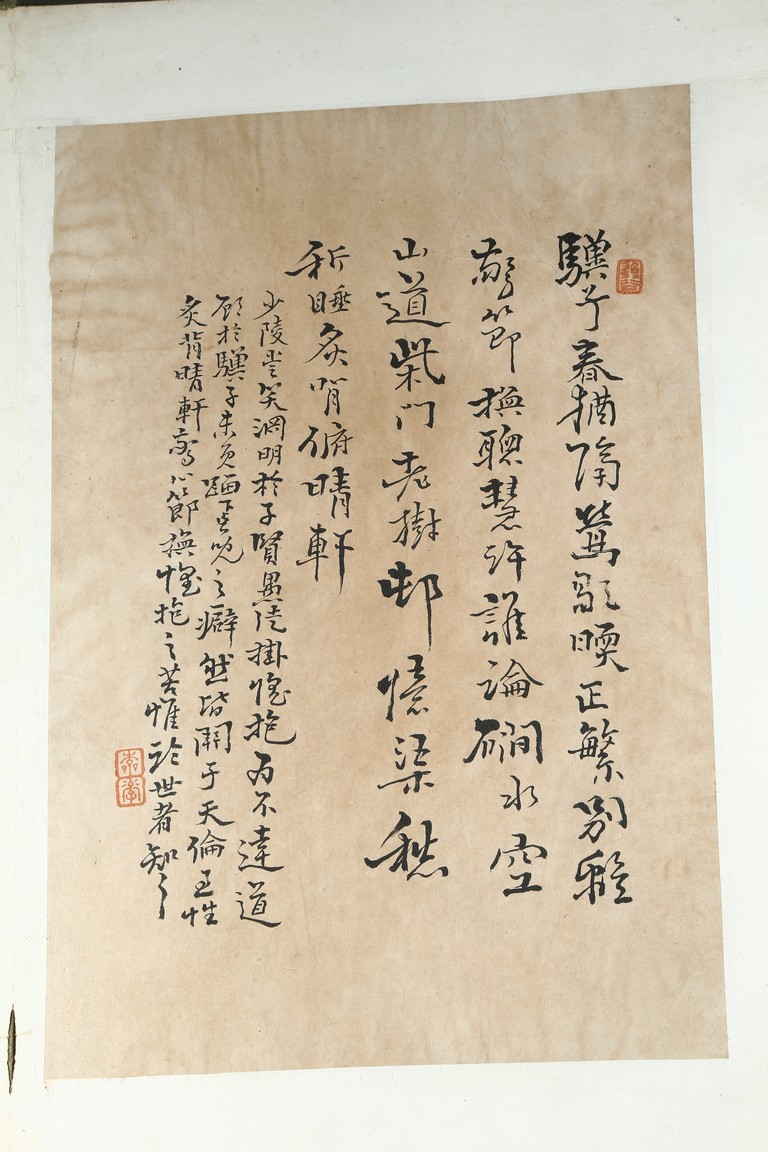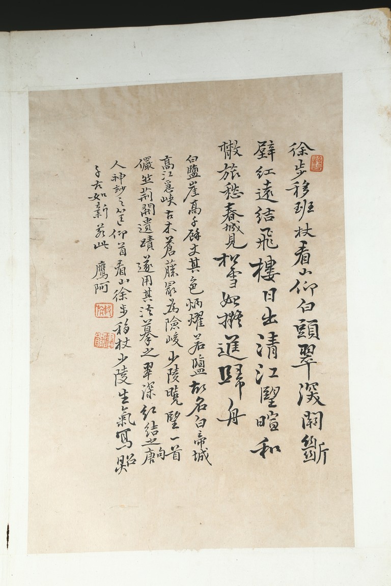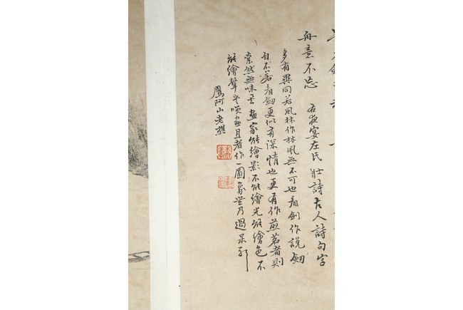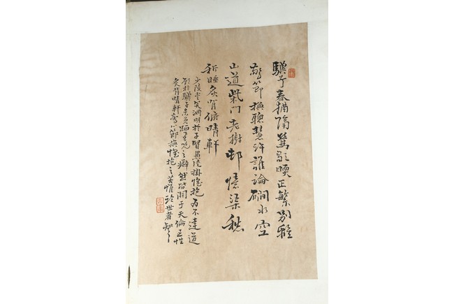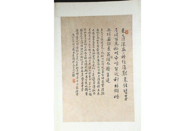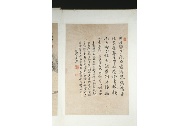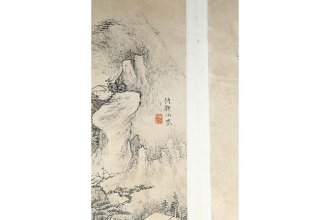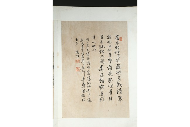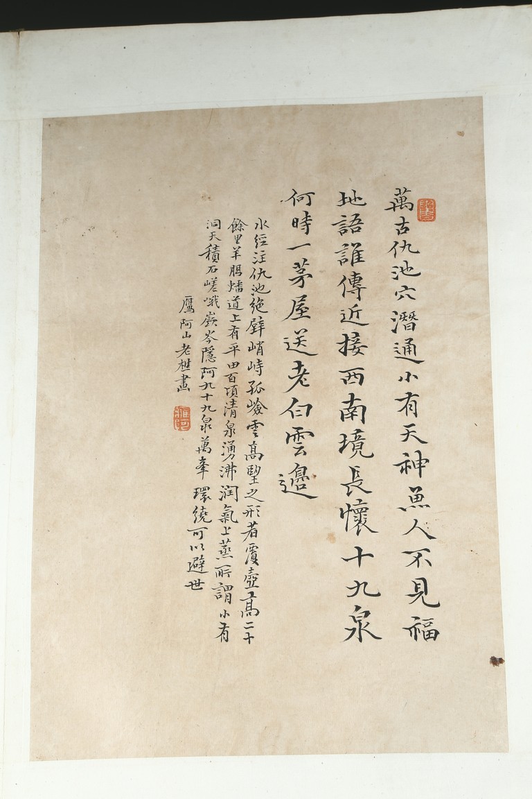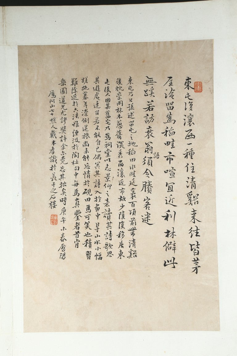 Ink on paper. Landscape and running script. Ten-leaf album painting. Signed by Dai Benxiao and with four seals of the artist.