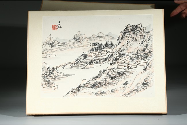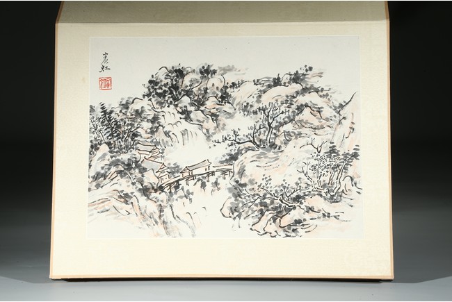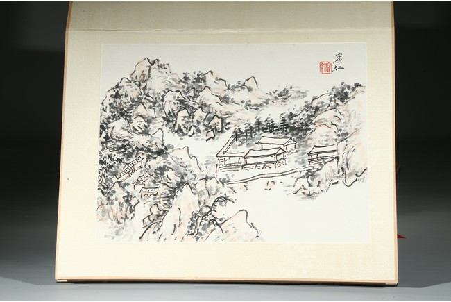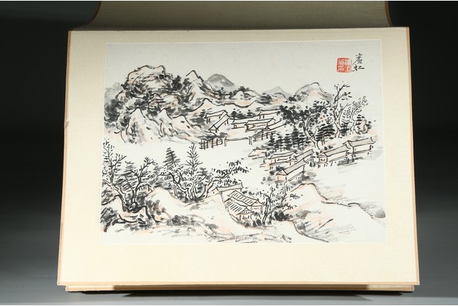 HUANG BINHONG: INK AND COLOR ON PAPER LANDSCAPE ALBUM 黃賓虹 山水手稿八開 設色紙本 冊頁
