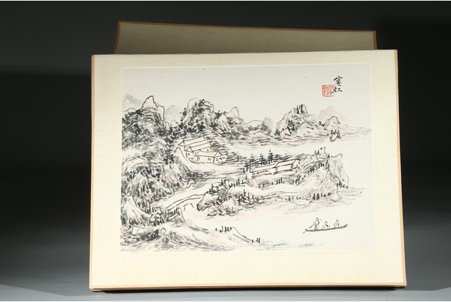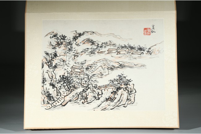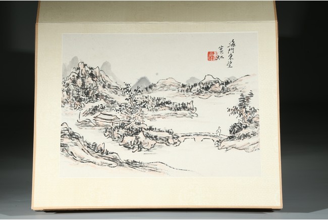Ink and color on paper. Landscape. Eight-leaf album. Inscribed and signed with eight seal marks.