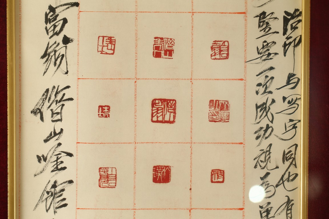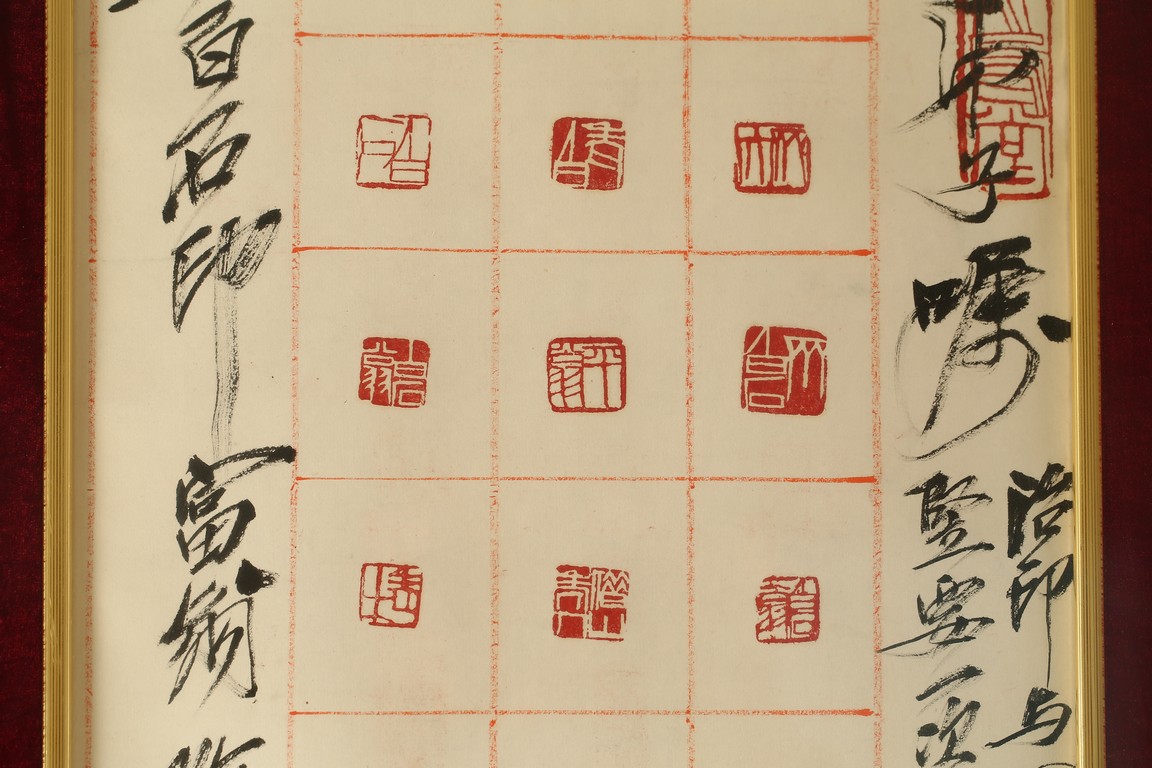QI BAISHI: INK ON PAPER SEAL MARKS AND CALLIGRAPHY 齊白石 書法印譜 紙本 鏡框