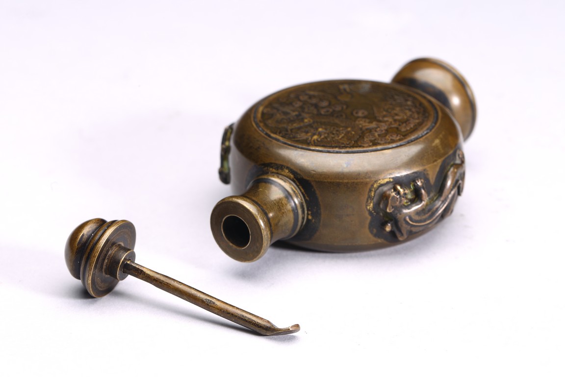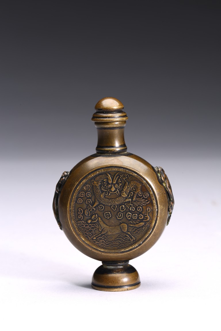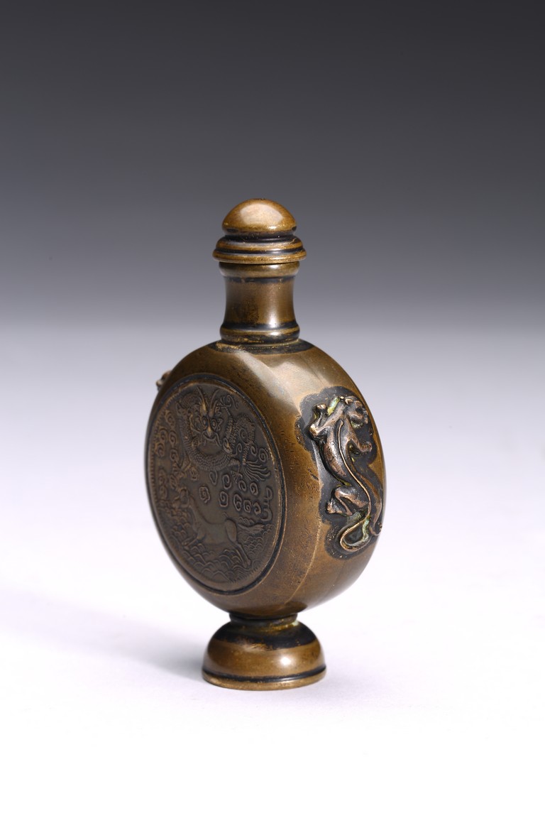 A BRONZE 'DRAGON' SNUFF BOTTLE 民國 銅龍紋鼻煙壺