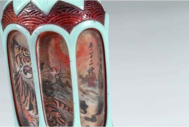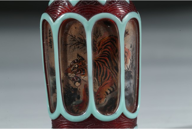 Glass. Inside painted with tiger and with inscription and seal marks.