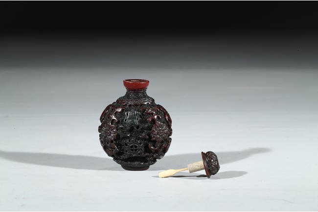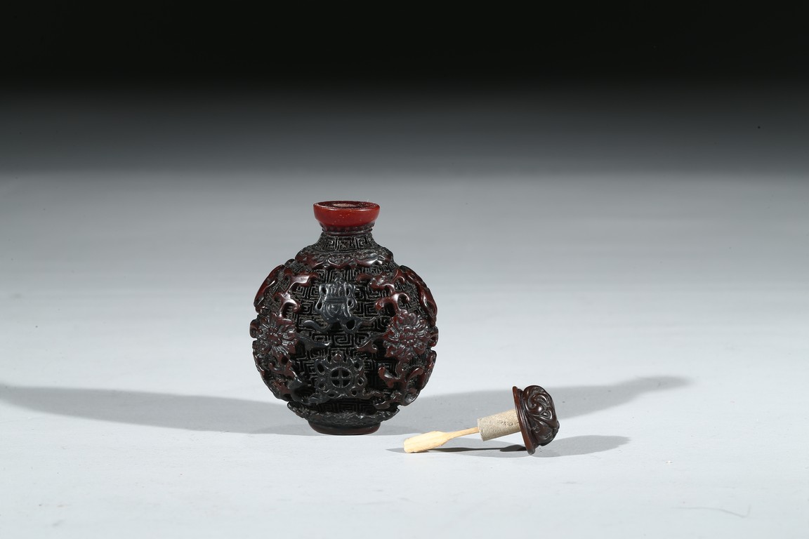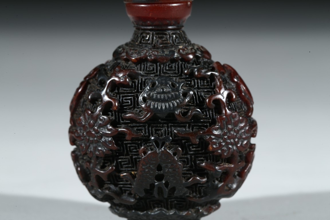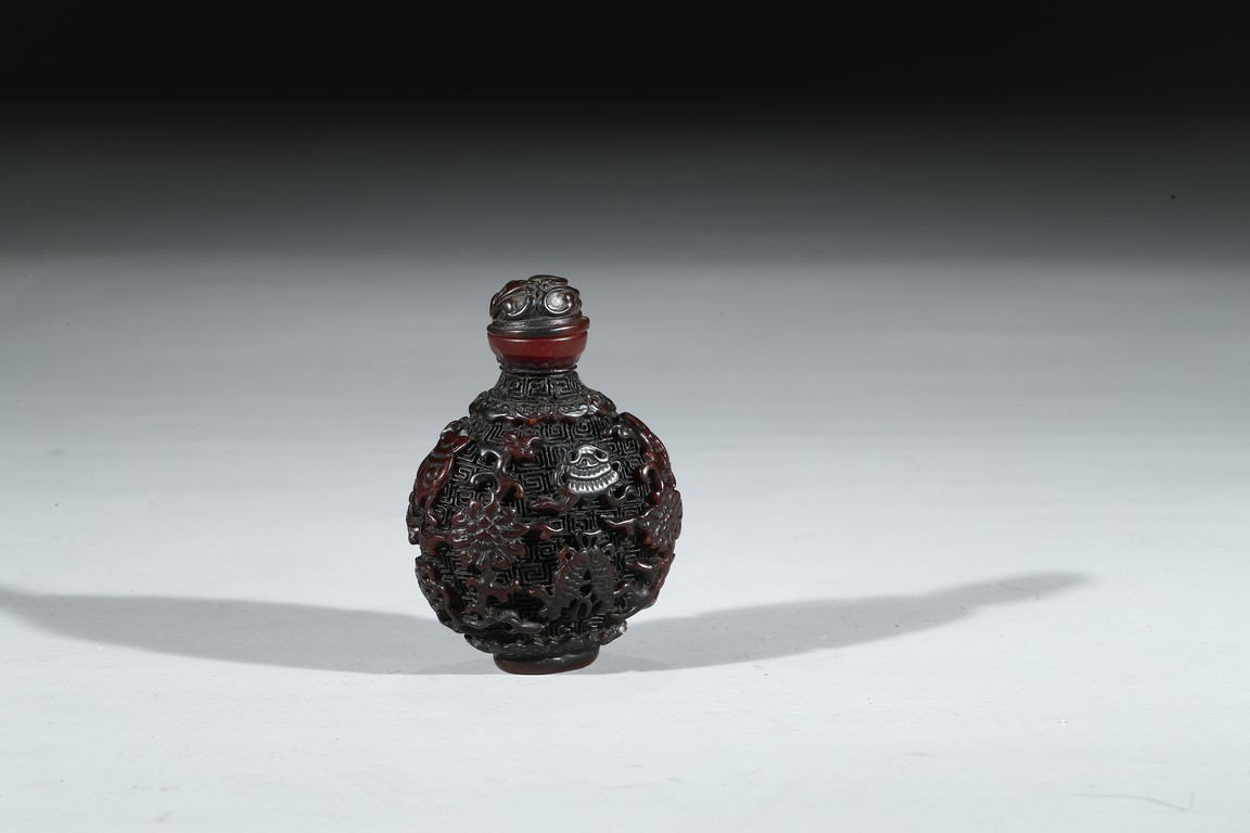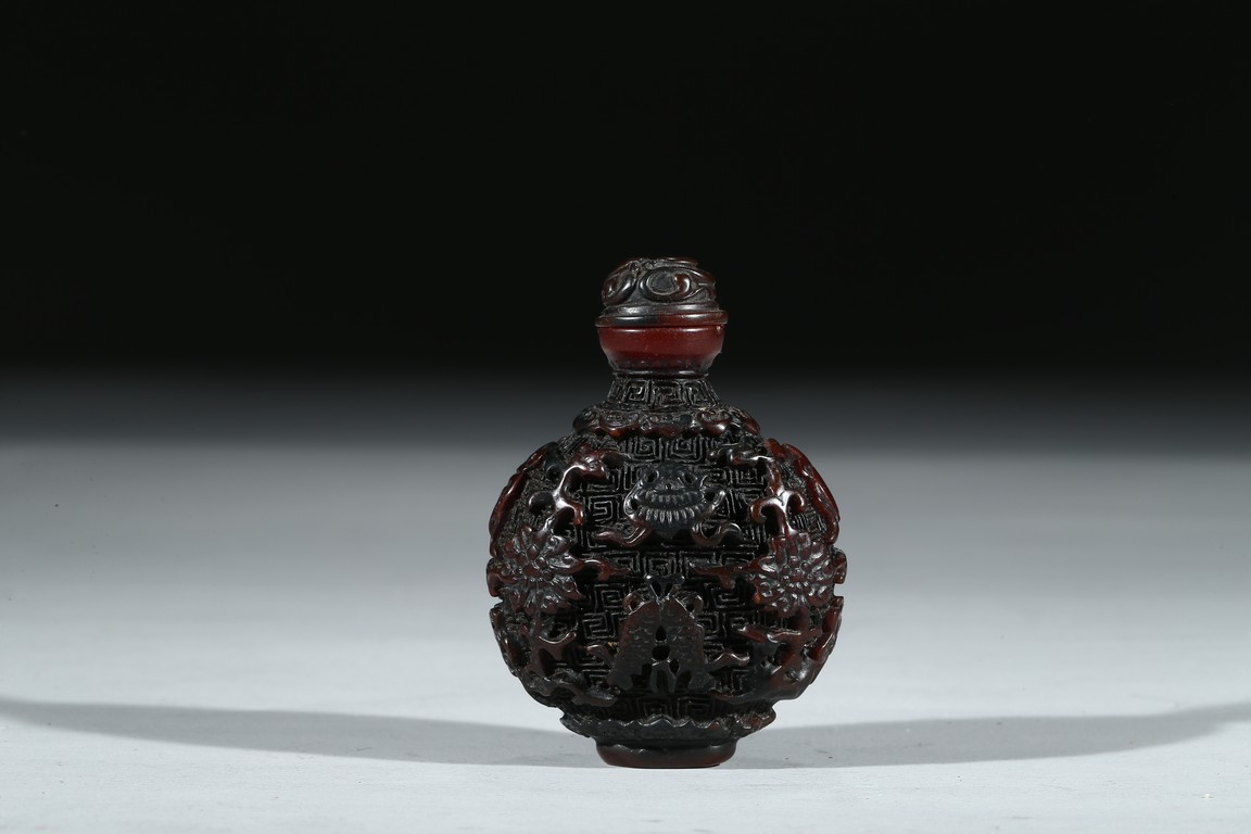 A HORN CARVED SNUFF BOTTLE 角雕鼻煙壺