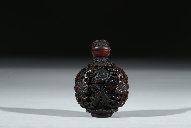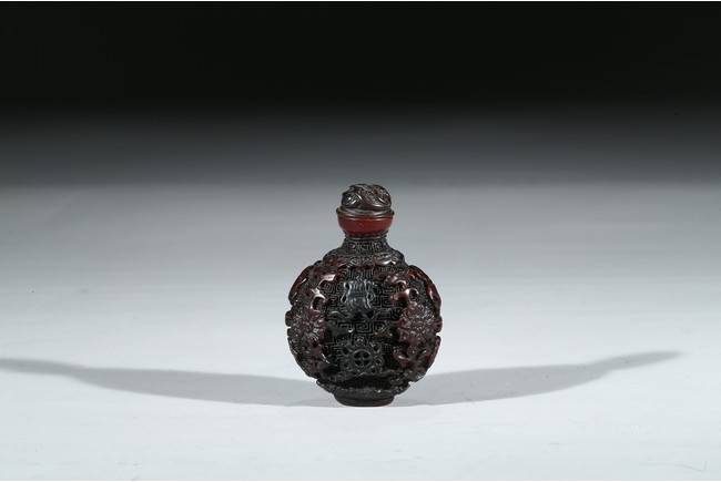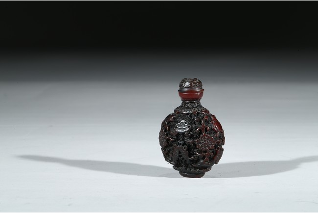 The exterior carved with buddhist motifs, fitted with stopper.