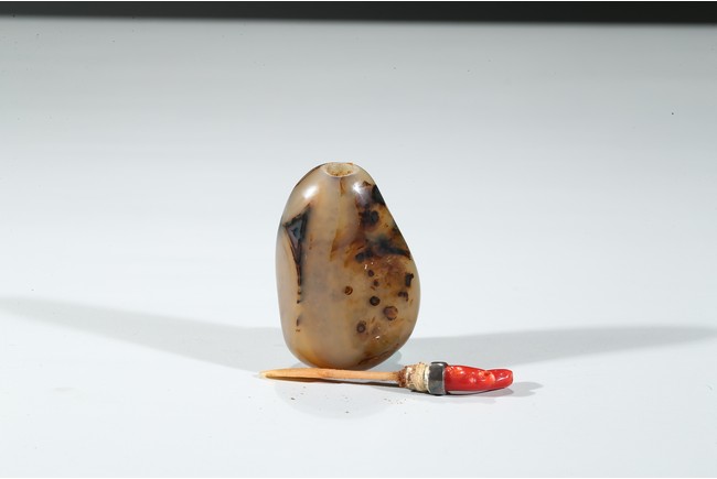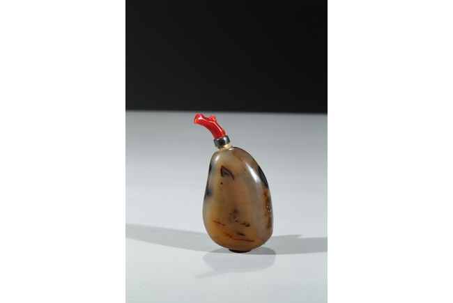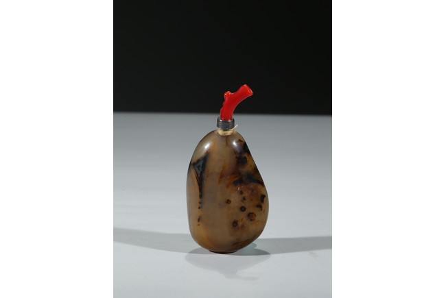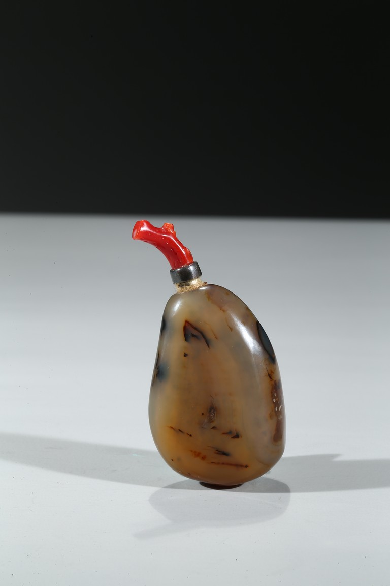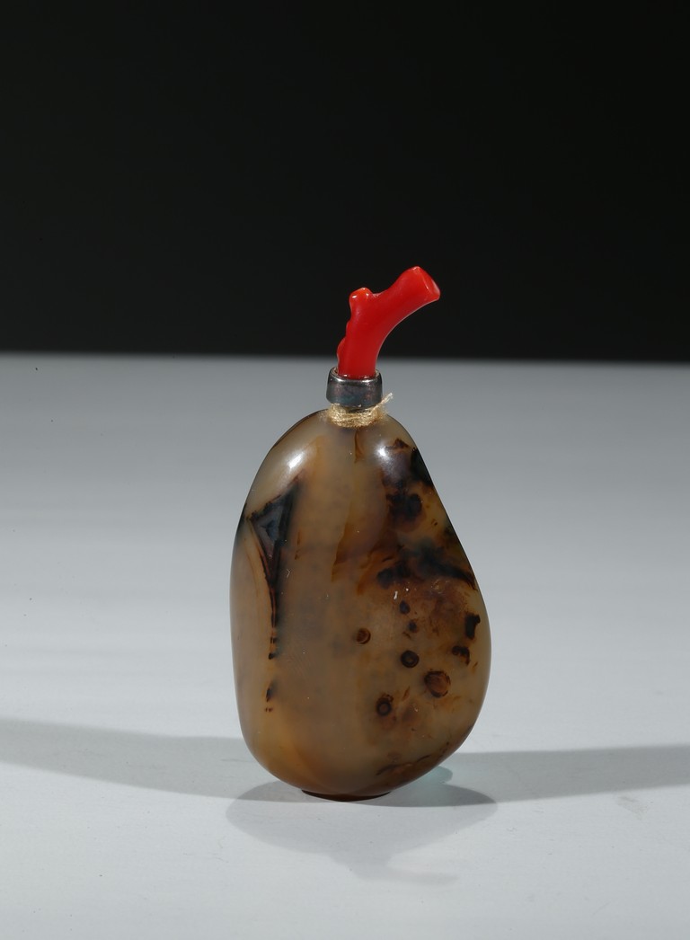 Of naturalistic agate pebble from with brown and russet inclusions, smoothly polished keeping the natural irregular shape, with red stopper. Qing Dynasty period.