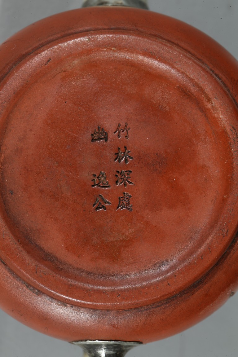 A YIXING INSCRIBED TEAPOT 逸公款紫砂玉嘴壺