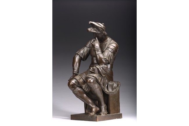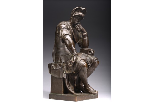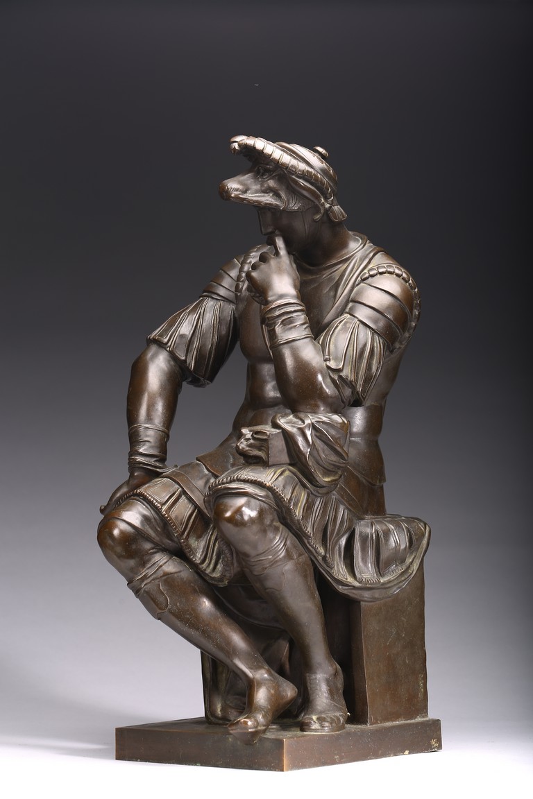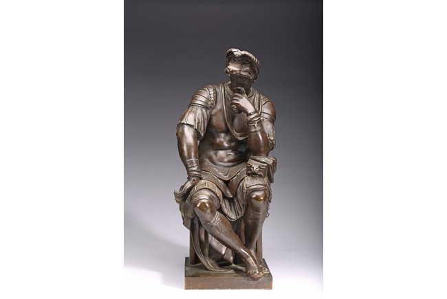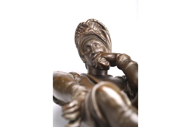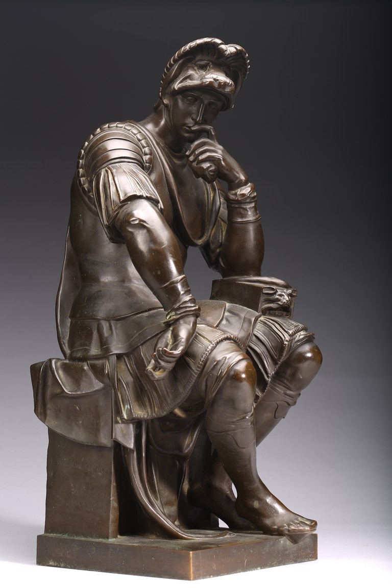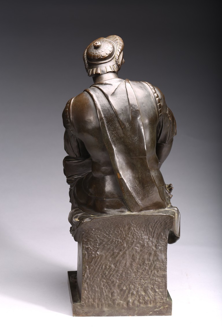 A patinated bronze figure of Lorenzo de Medici, after michelangelo's sculpture at the Medici Chapel, Florence, Italy, circa 1875-1890.