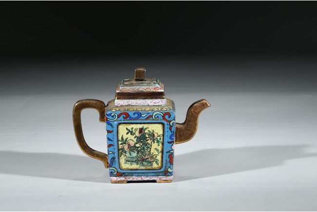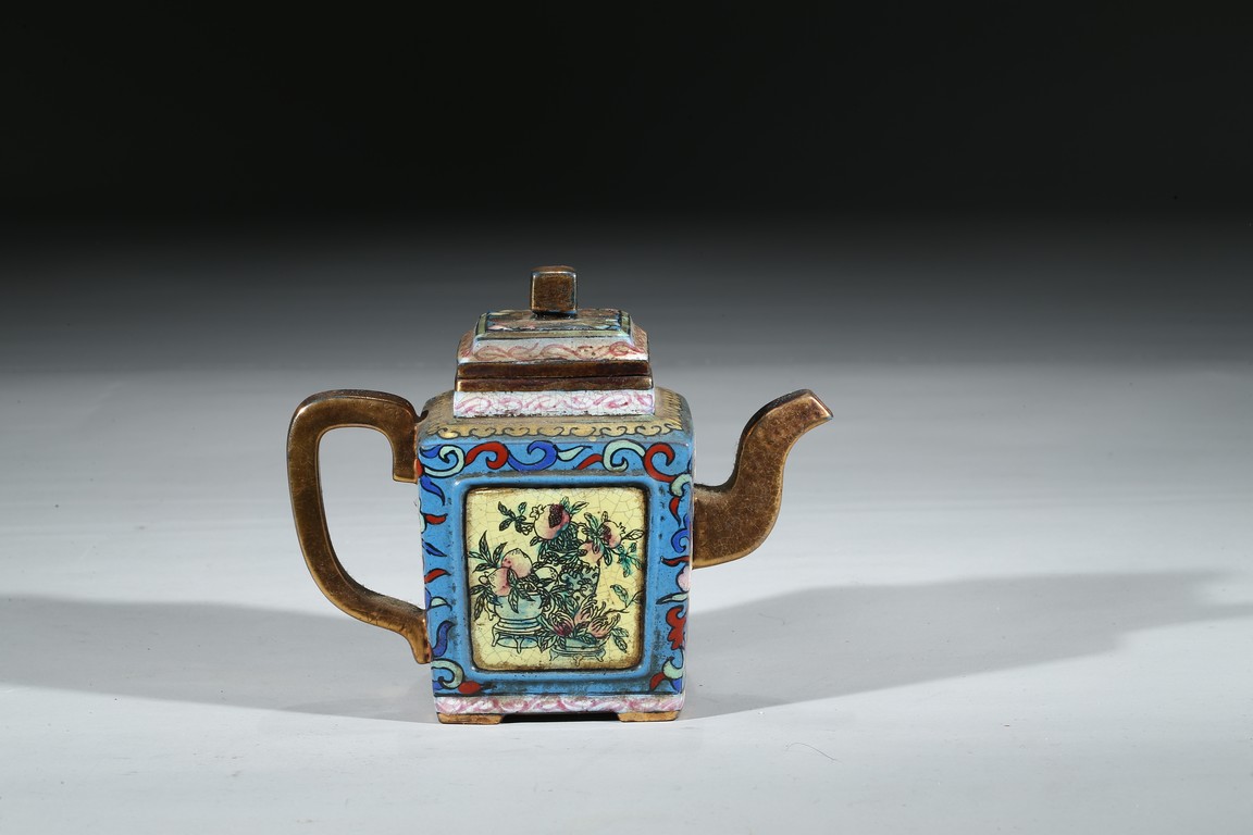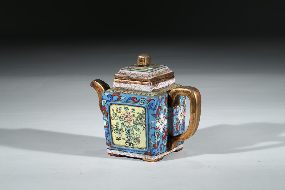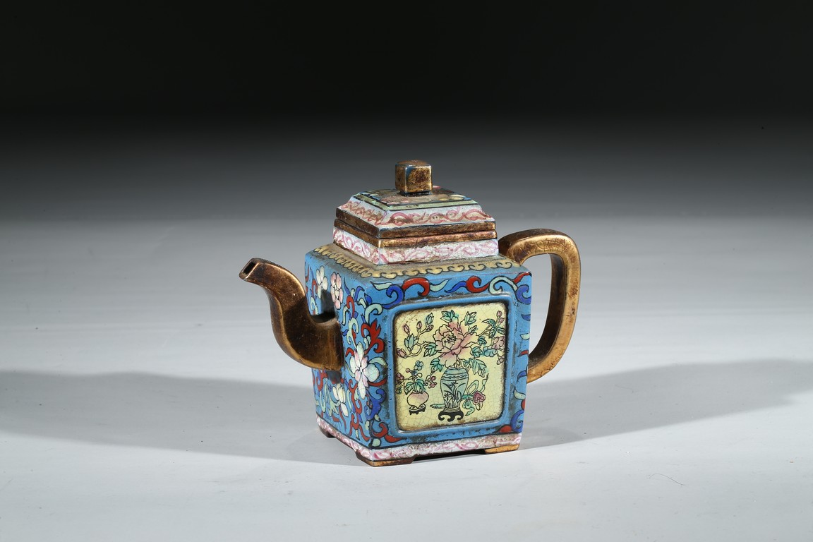A ENAMELLED YIXING TEAPOT 民國 畫琺瑯紫砂壺