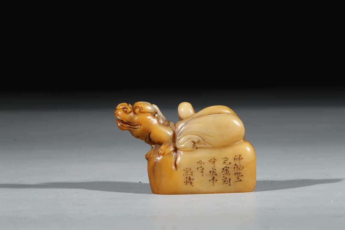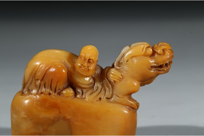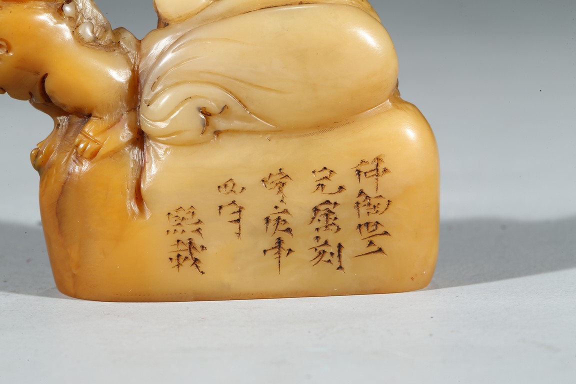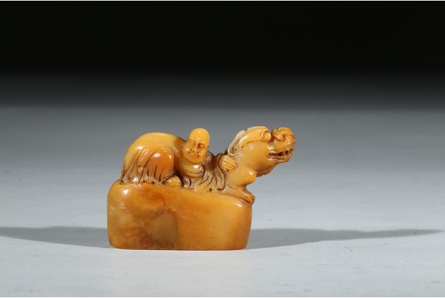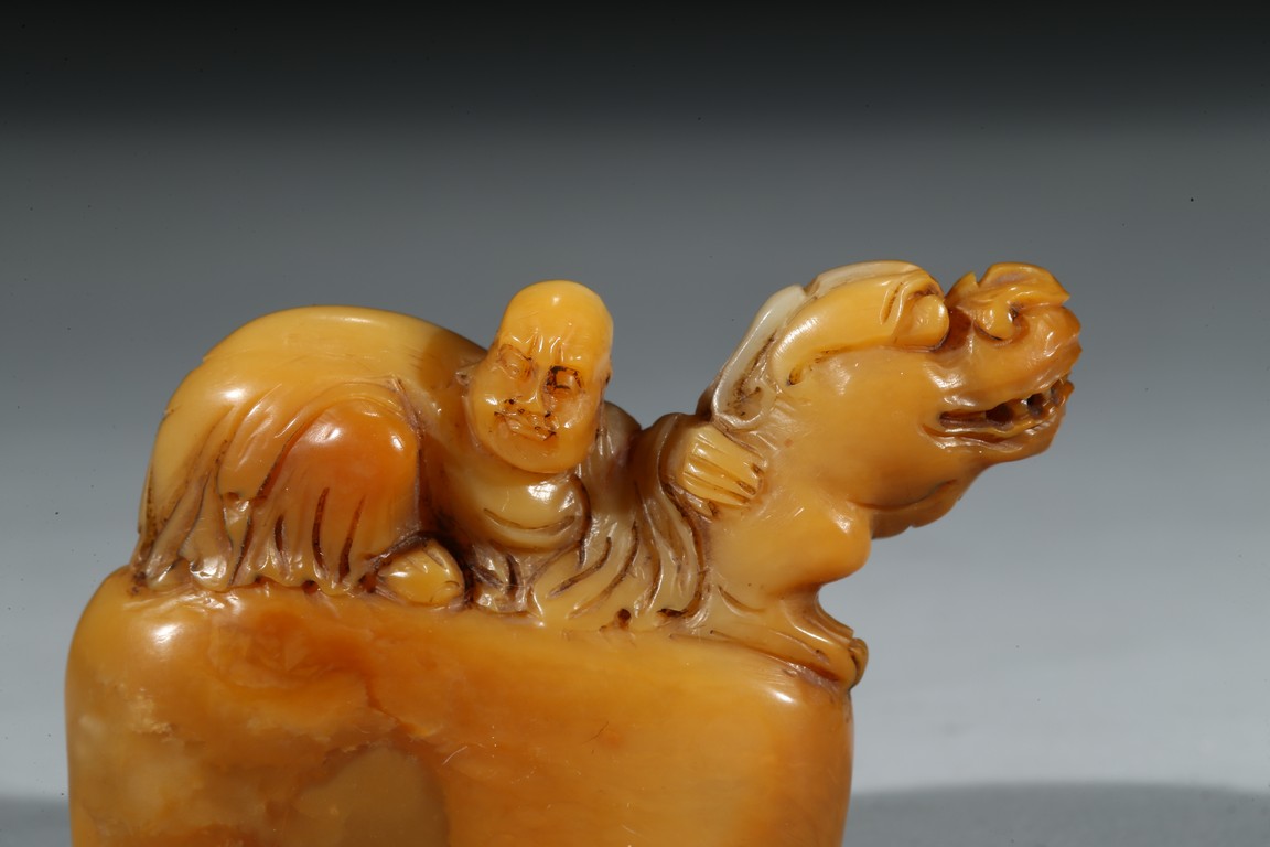A SHOUSHAN 'ARHAT' SEAL 壽山石羅漢龜鈕印章
