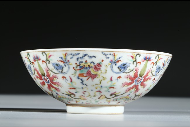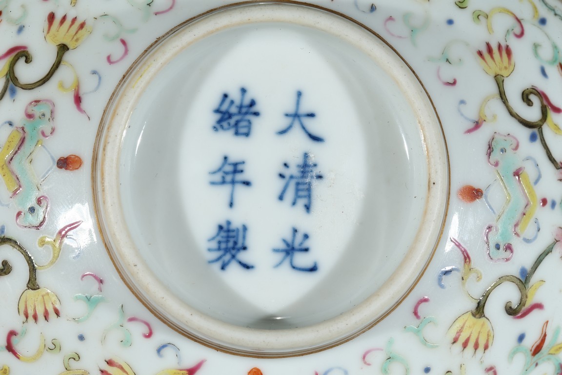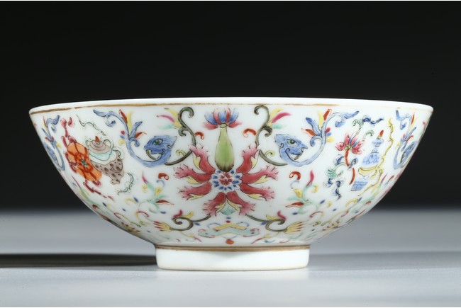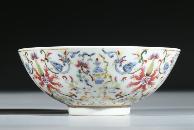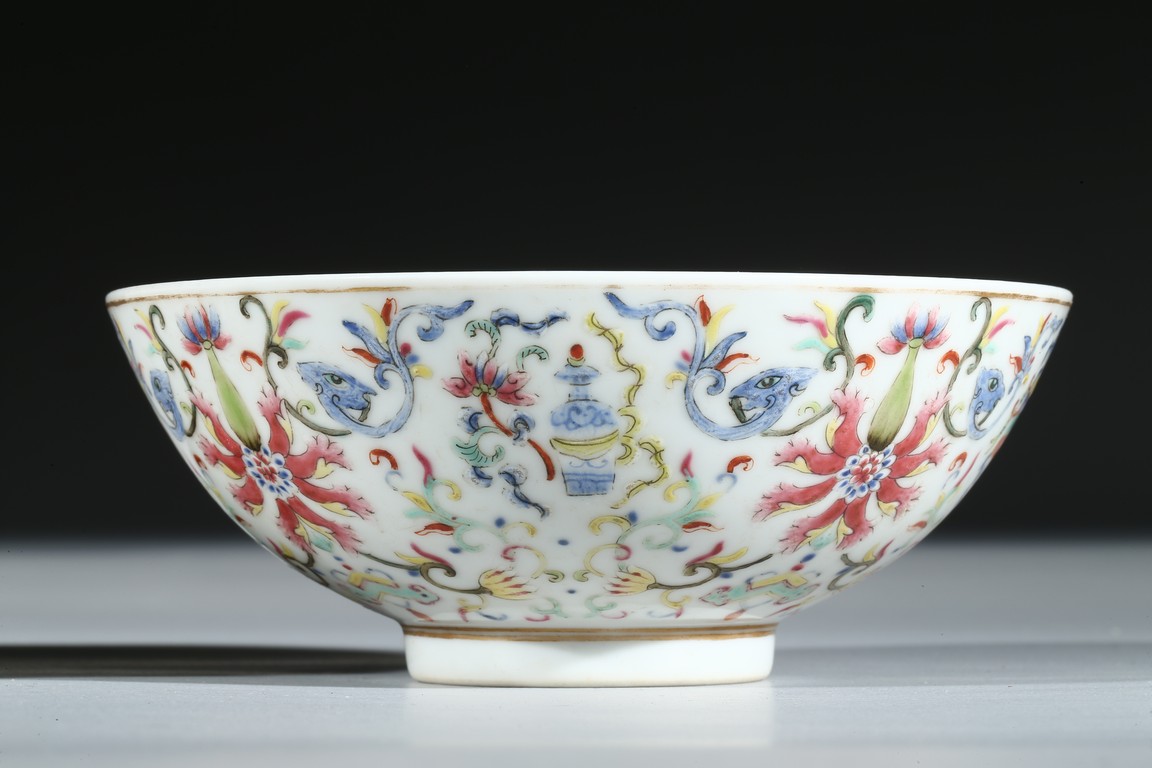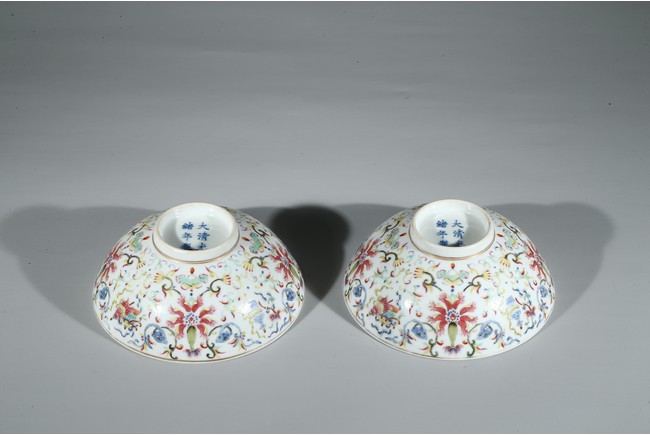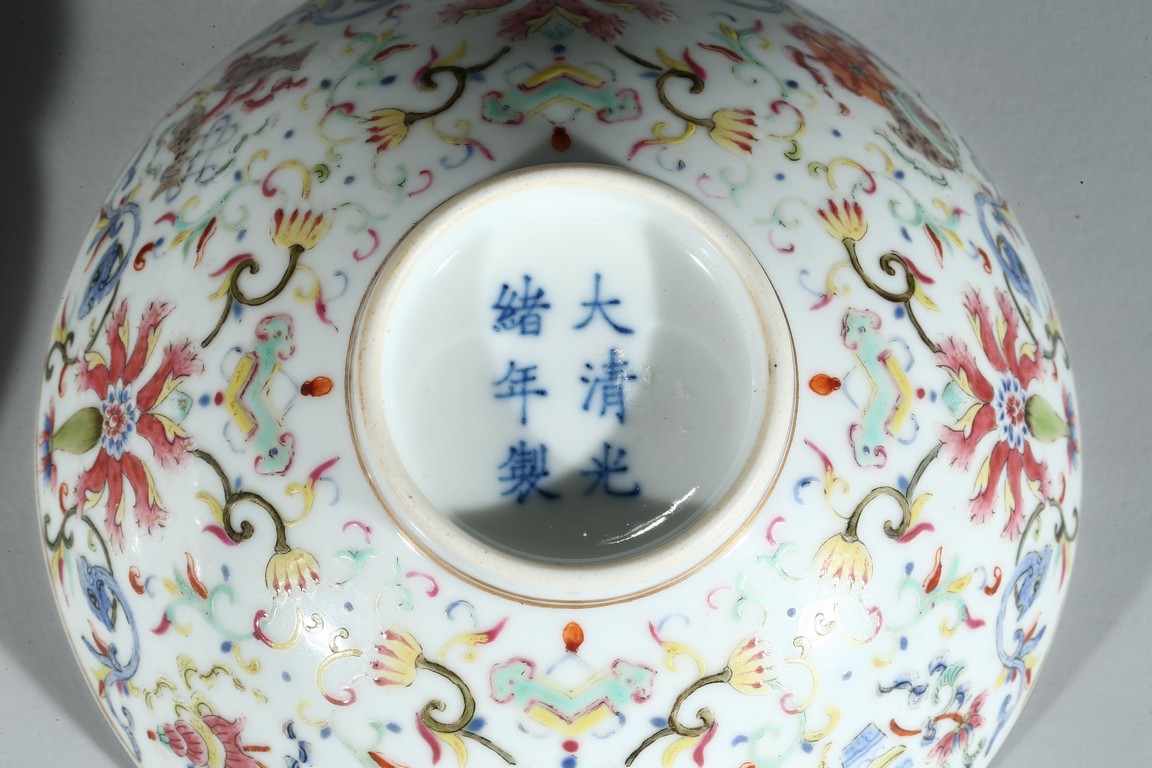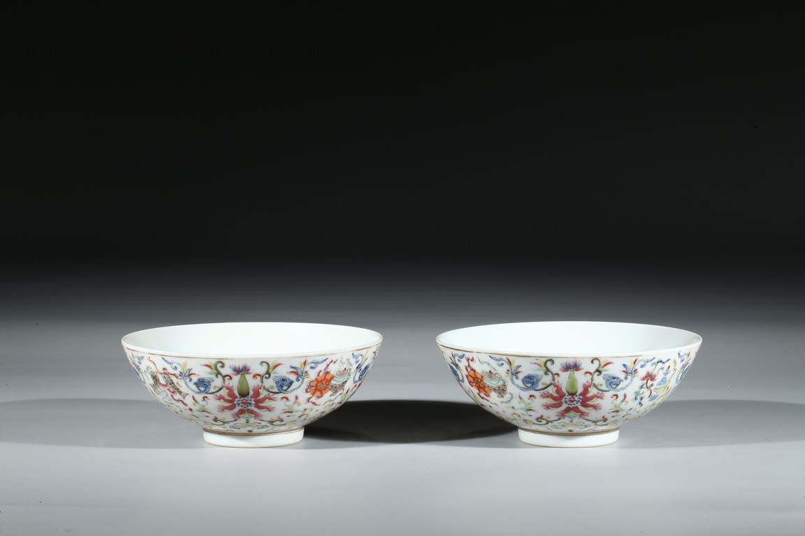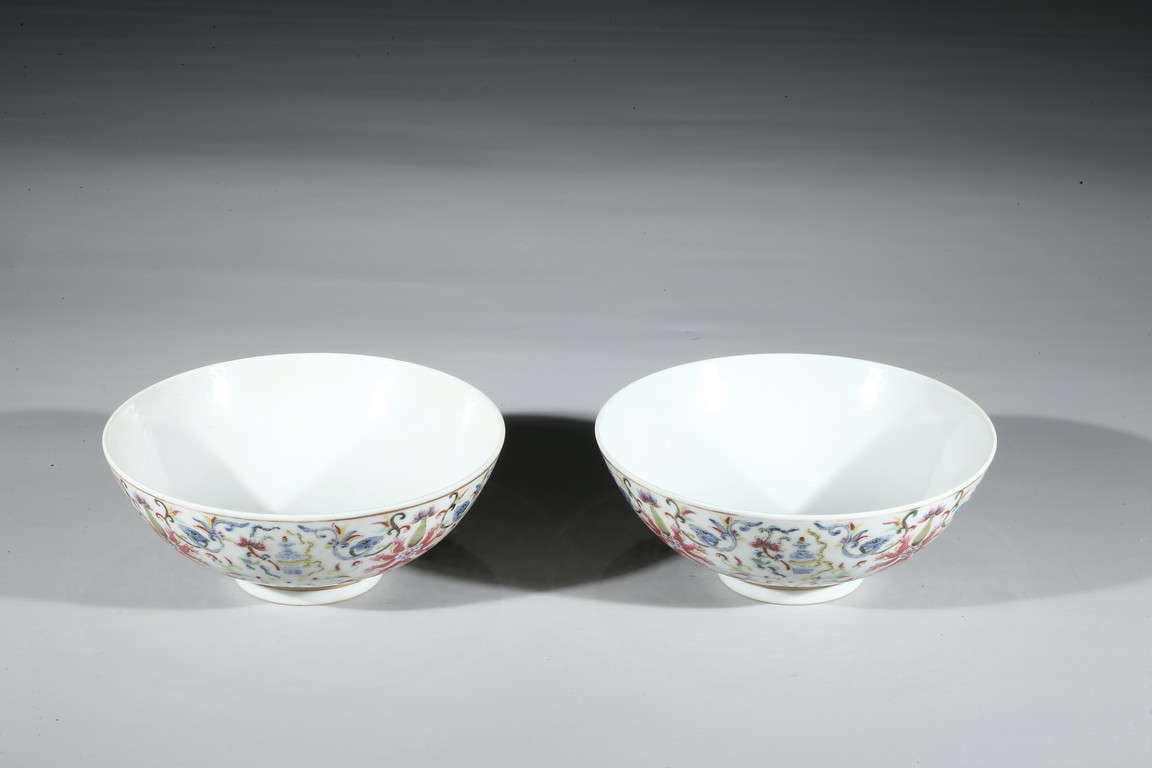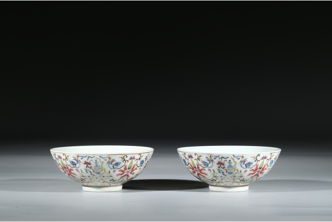 Each bowl finely enamelled around the body to depict eight buddhist auspicious motif. The base inscribed with six character Guangxu mark. Qing Dynasty period.