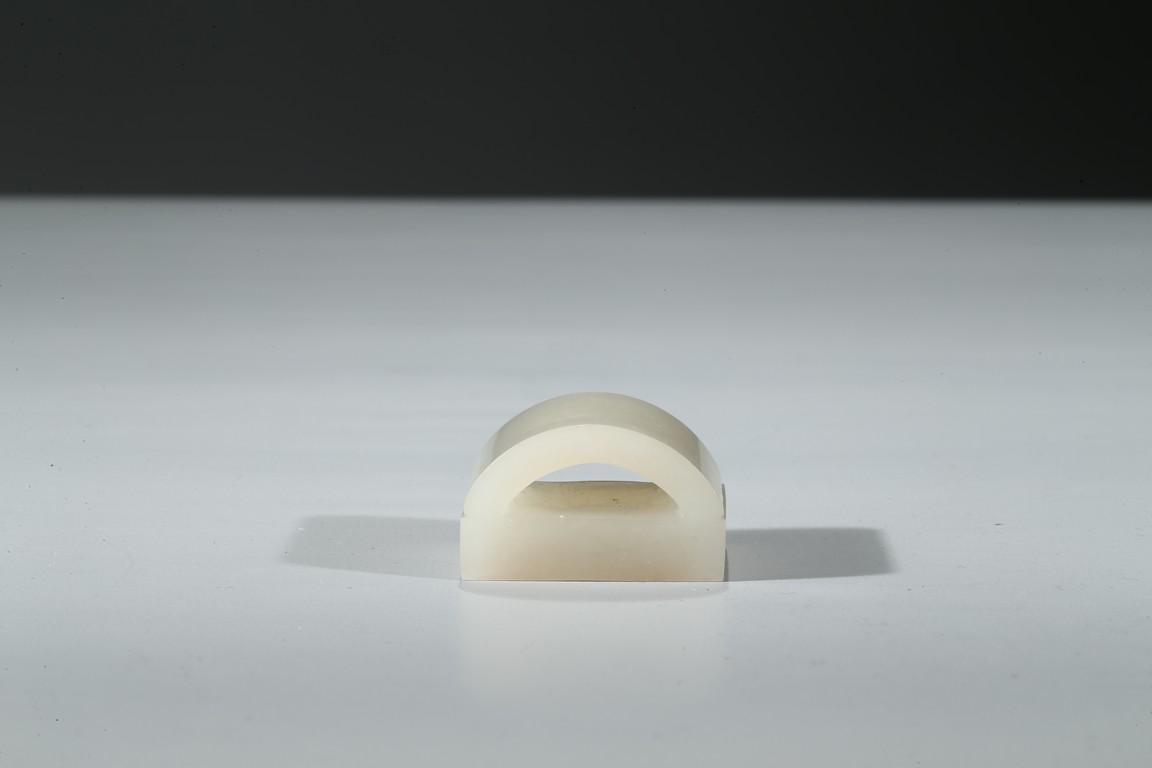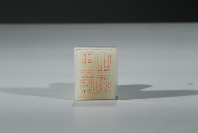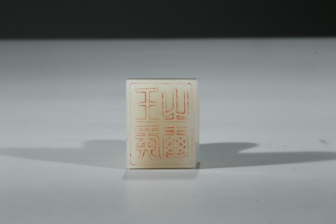 白玉製成,玉質溫潤潔白,包漿渾厚。印紐作拱橋型。印文:“王侯之璽”。
