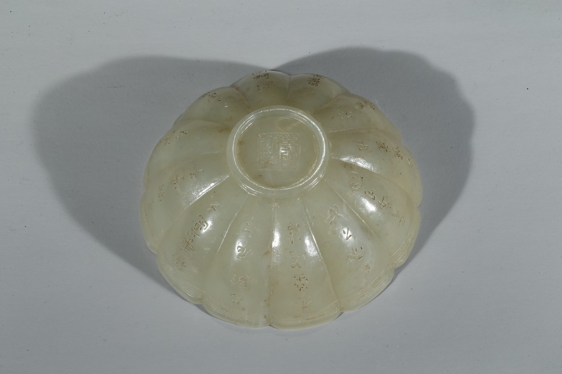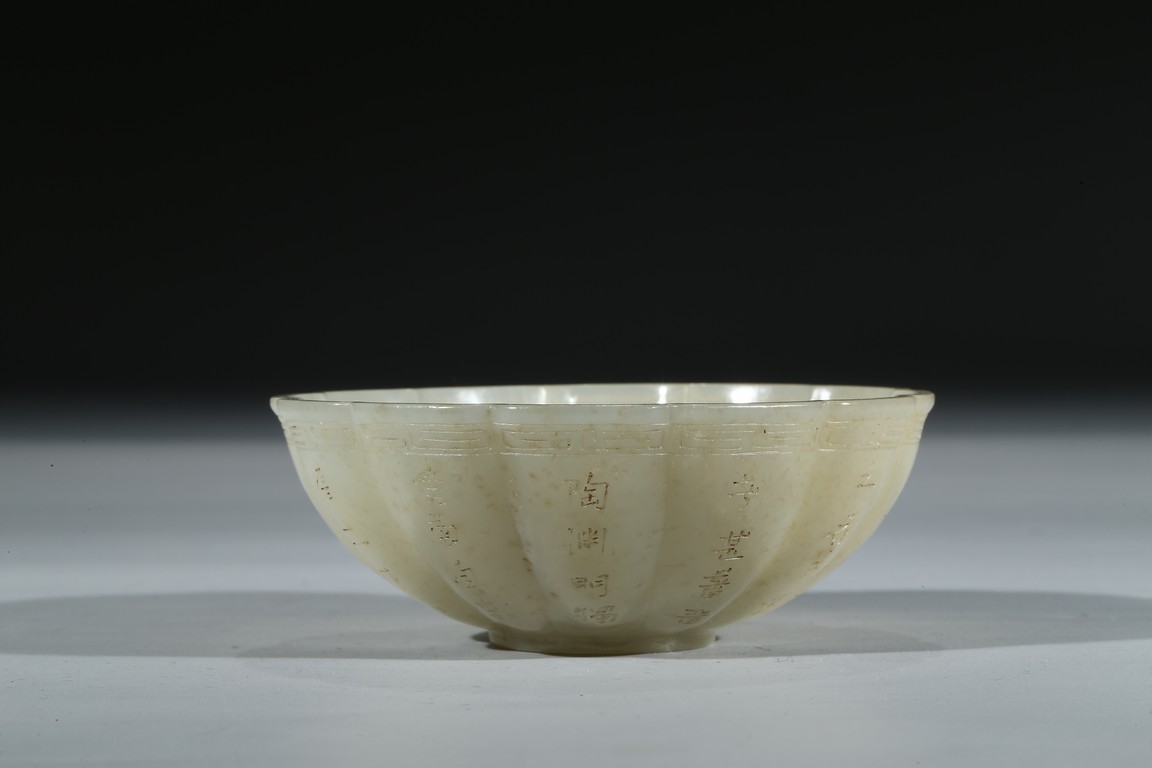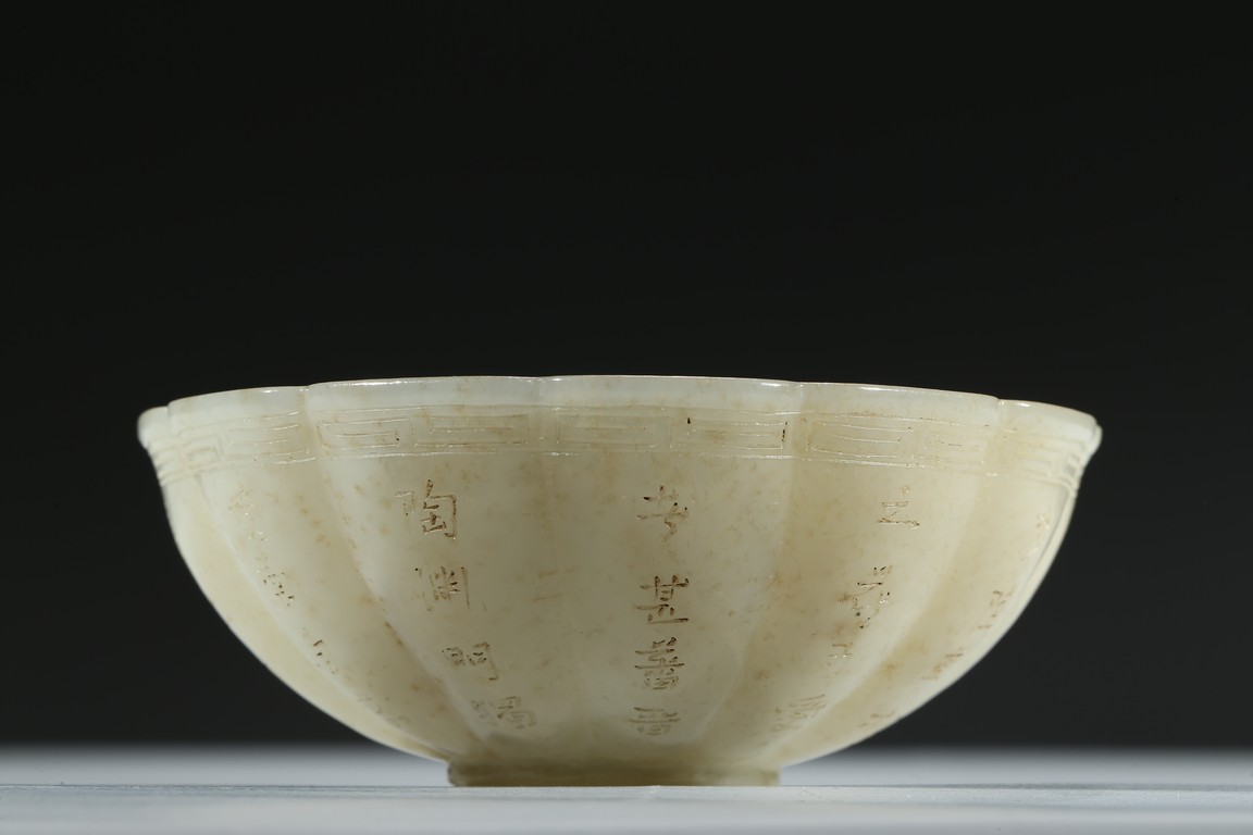 A WHITE JADE 'INSCRIBED' BOWL 白玉雕葵花詩文碗