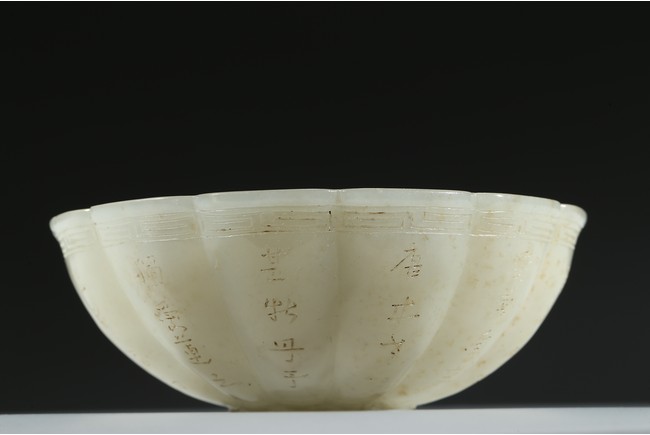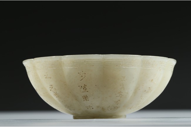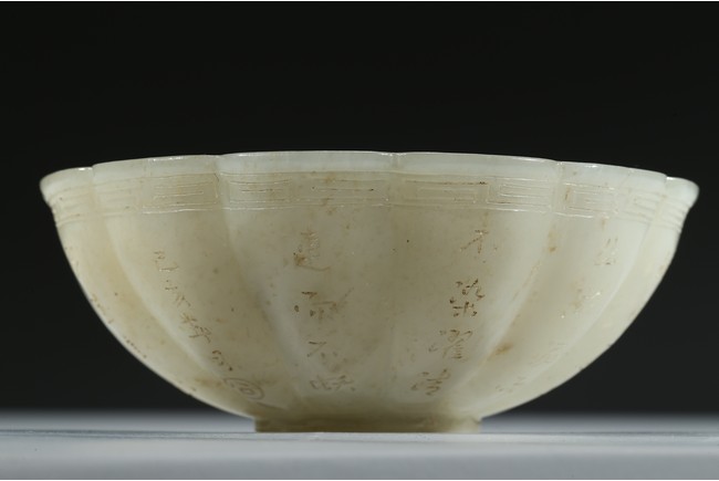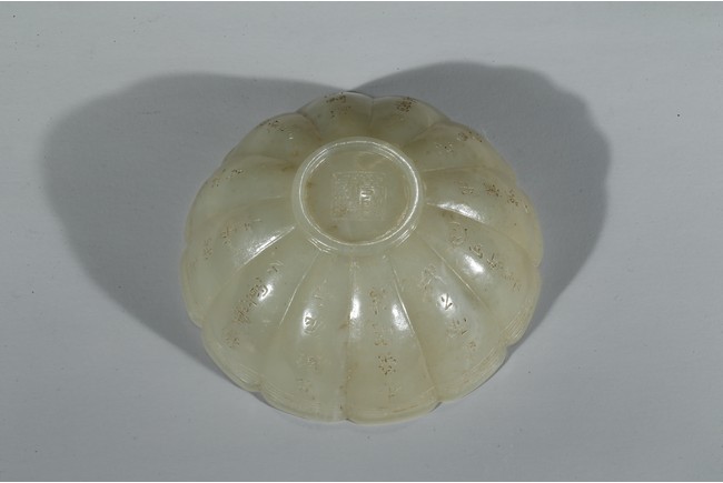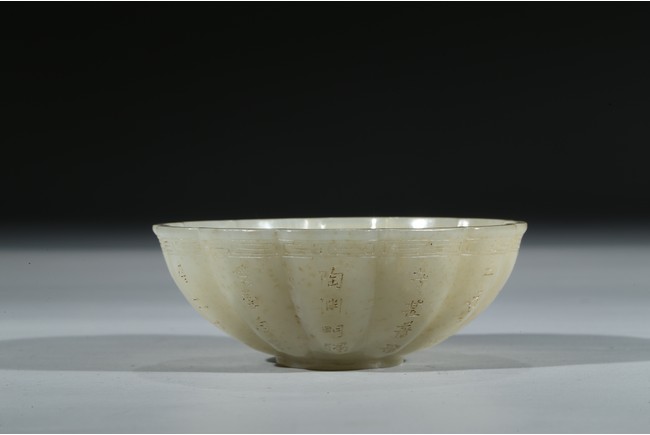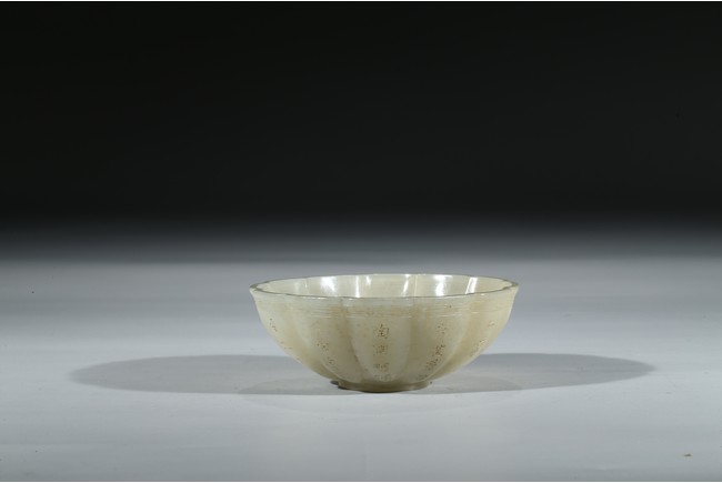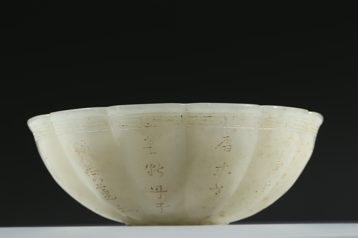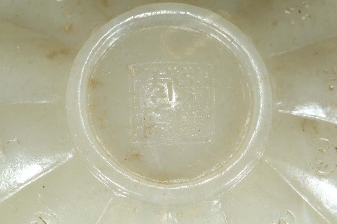 A WHITE JADE 'INSCRIBED' BOWL 白玉雕葵花詩文碗