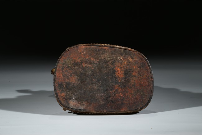 Provenance: Property from a private collection, Virginia 大成就者毗瓦巴是薩迦道果的傳承祖師,佛教史上公認的印度八十四大成就者之一。造像頭髮捲曲,面部表情的刻畫非常精采,雙目圓鼓,濃眉微蹙,笑露牙齒。毗瓦巴遊戲坐姿,左手托嘎巴拉碗,右手指向天空,顯示他以手指定住太陽的法力。軀體肚大腰圓,四肢粗壯,姿態輕鬆自若,是密修者所具有的神秘忿怒力量之外在體現。整像工藝精湛,題材尊貴,極具收藏價值。“大明宣德年施”款識。 來源: 維吉尼亞州私人藏家收藏