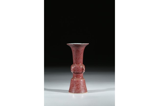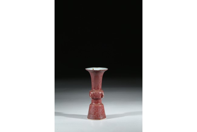 A PEACHBLOOM RED GLAZED VASE 豇豆紅尊口(有小傷)