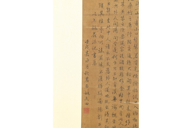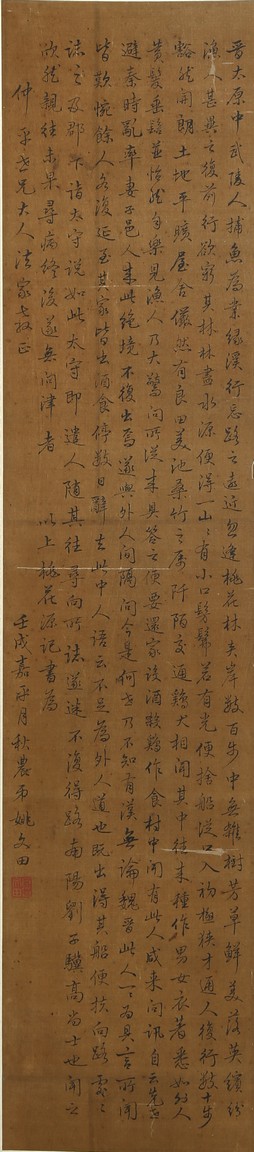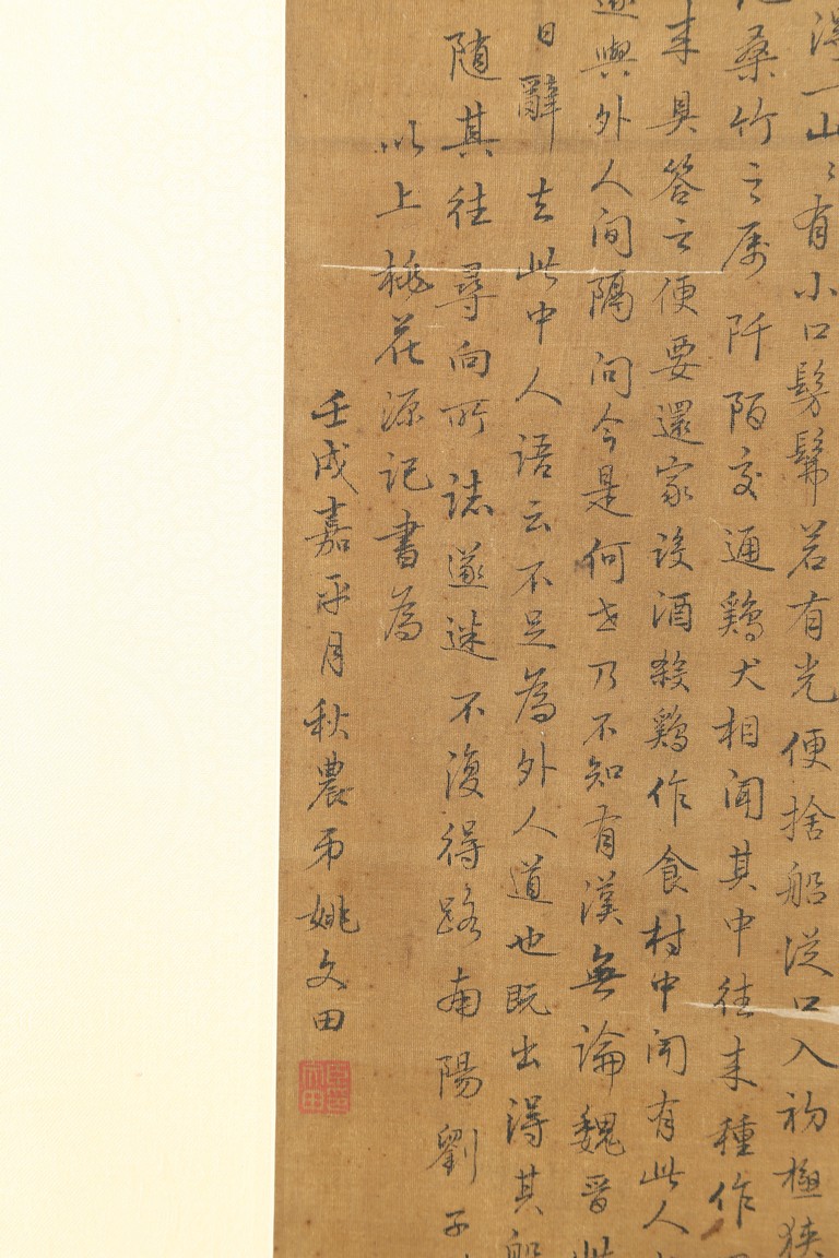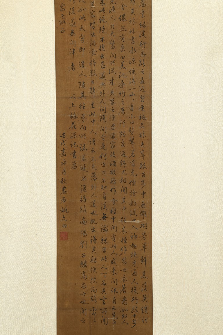 Ink on silk. Running script calligraphy. Hanging scroll. Inscribed and signed Yao Wentian, with one seal of the artist.