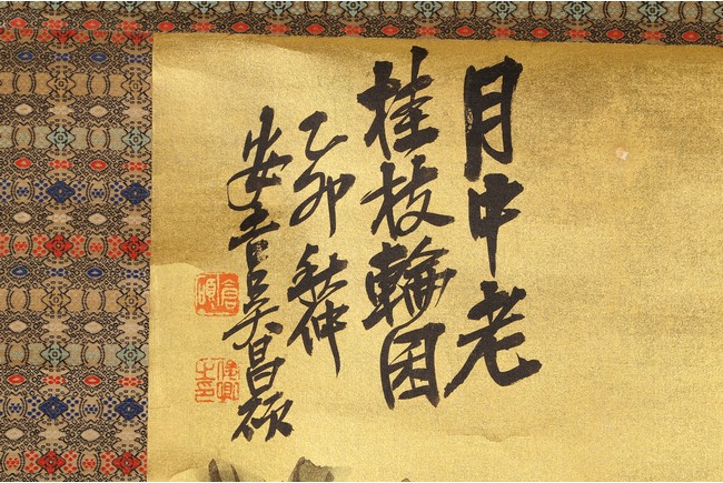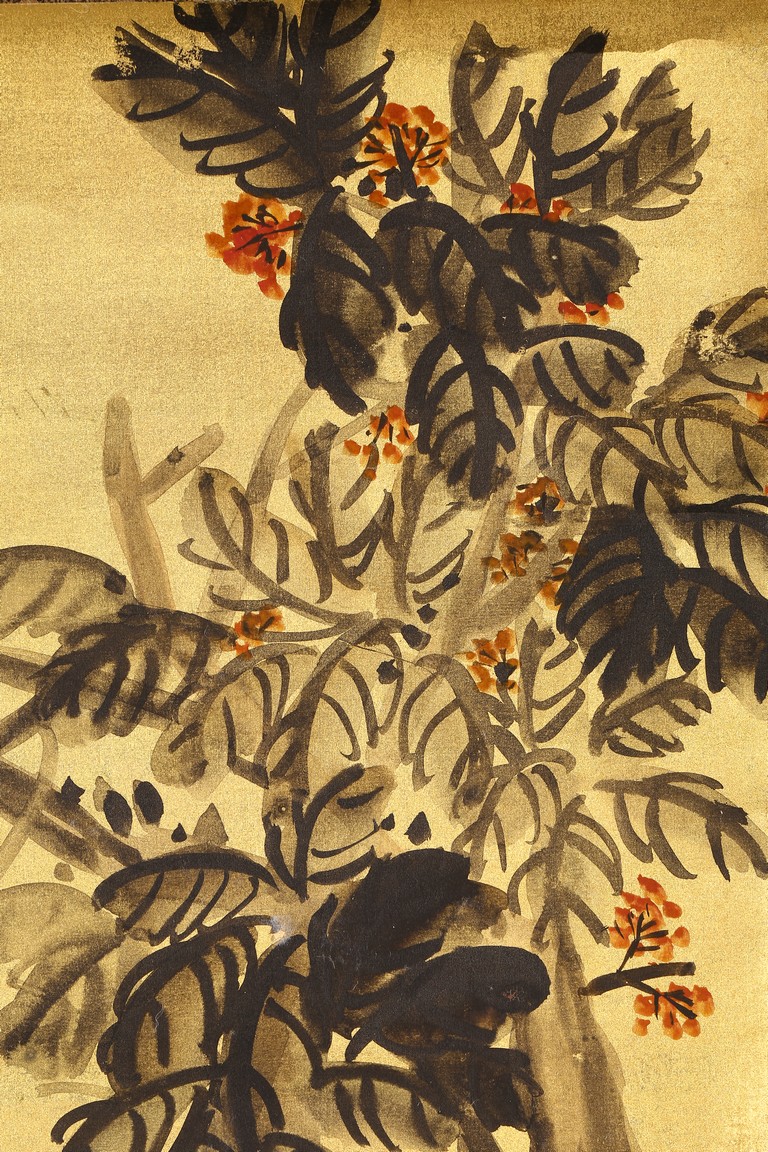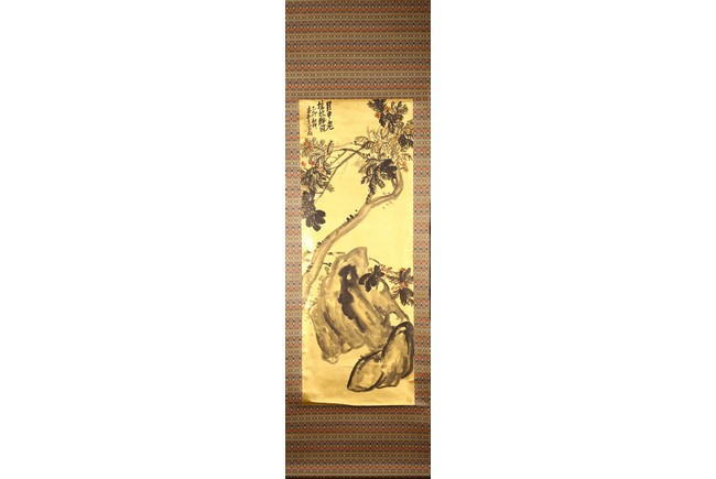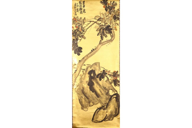 Color and ink on silk. Osmanthus. Hanging scroll. Inscribed and signed, with two marks. Wu Changshuo (1844-1927)