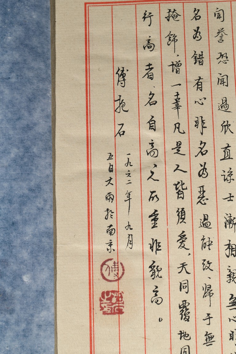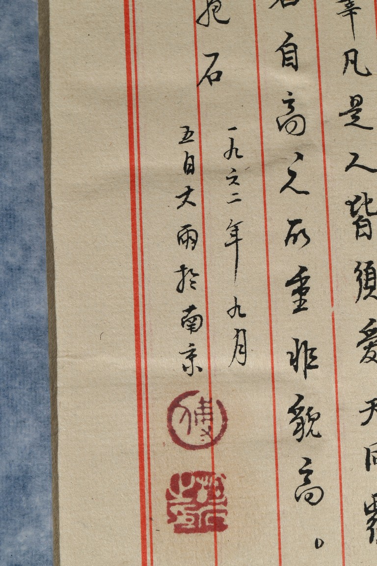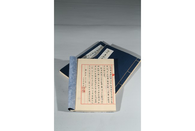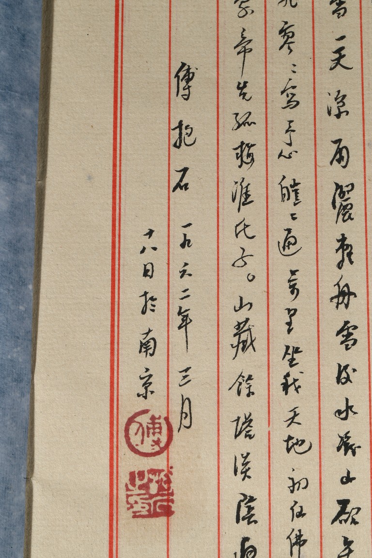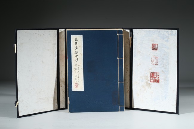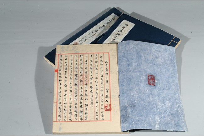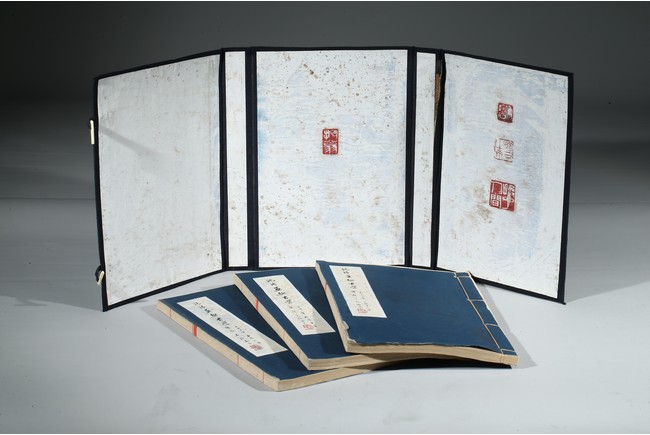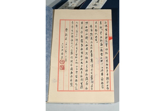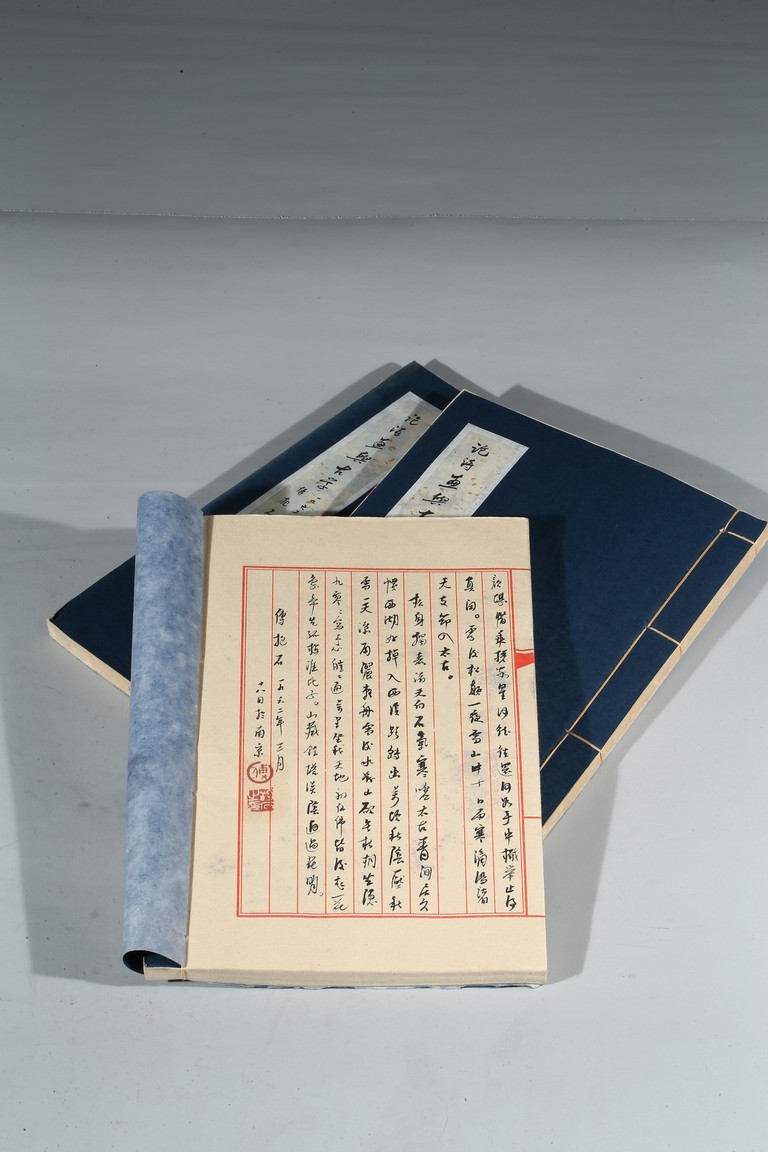 Ink on paper. Three handwritten books. Including a book hardcover. Signed by Fu Baoshi with twelve seals of the artist.