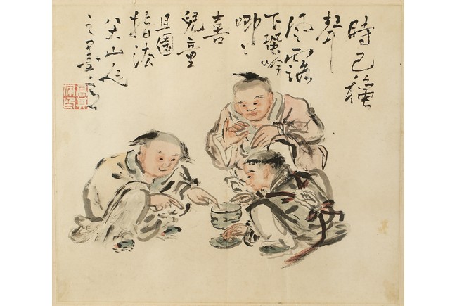 A COLOR AND INK ON PAPER 'CHILDREN' PAINTING 高其佩款 人物 設色紙本