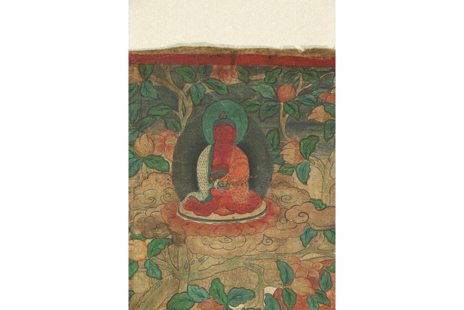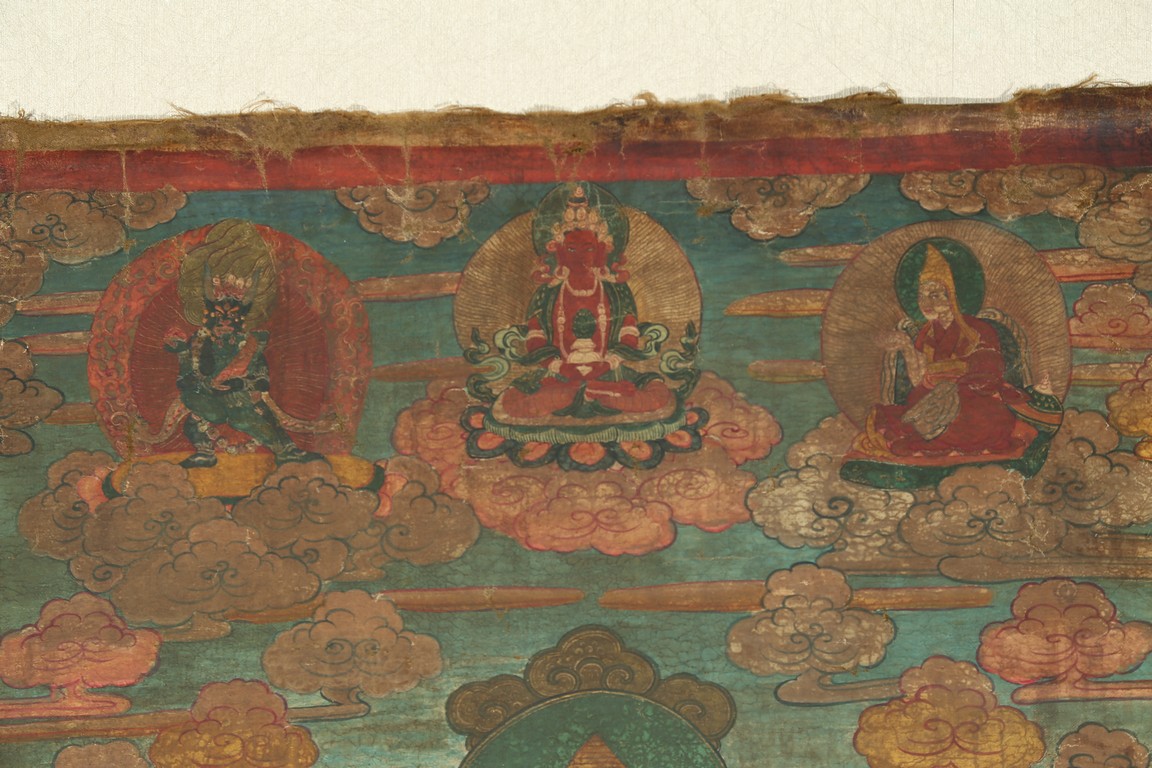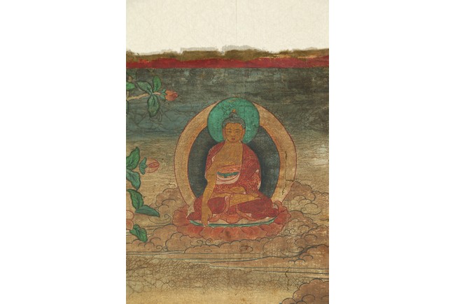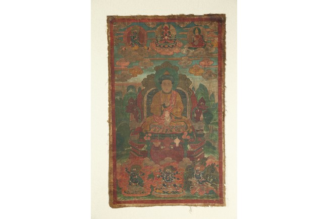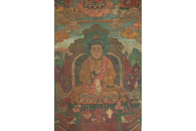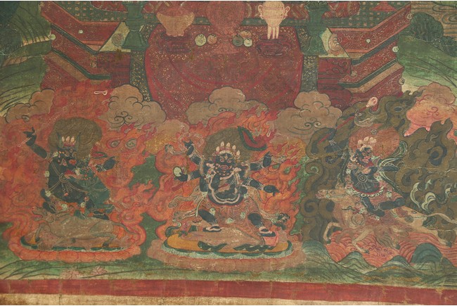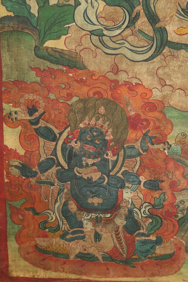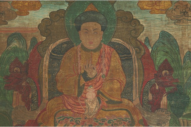 Comprising two thangkas, each thangka depicting different bodhisattva sense and painted in vivid color with the main central figure in various landscape settings.