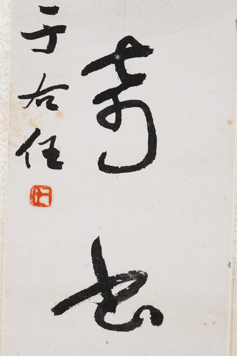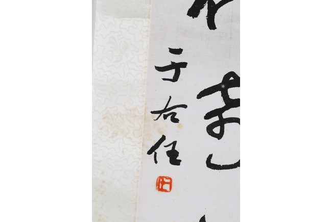 Ink on paper. Calligraphy couplet. Hanging scroll. Signed Yu Youren and with one seal mark.