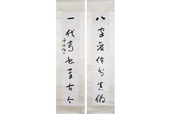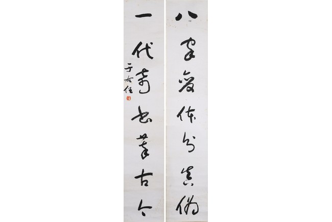 YU YOUREN: INK ON PAPER CALLIGRAPHY COUPLETS 于右任 七言聯 立軸